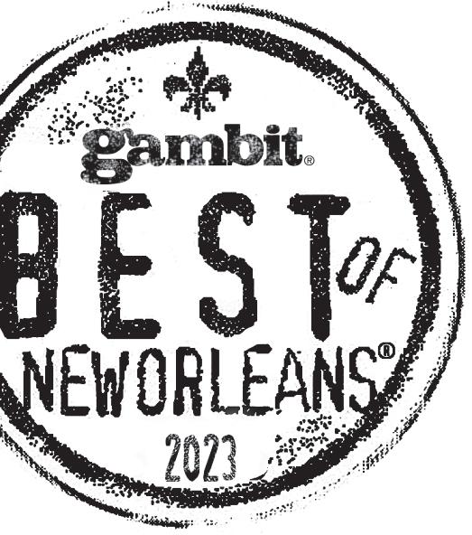 11 GAMBIT > BESTOFNEWORLEANS.COM > Sep T e MB er 25Oc TOB er 1 > 2023 BEST OF NEW ORLEANS READERS’ POLL 2023