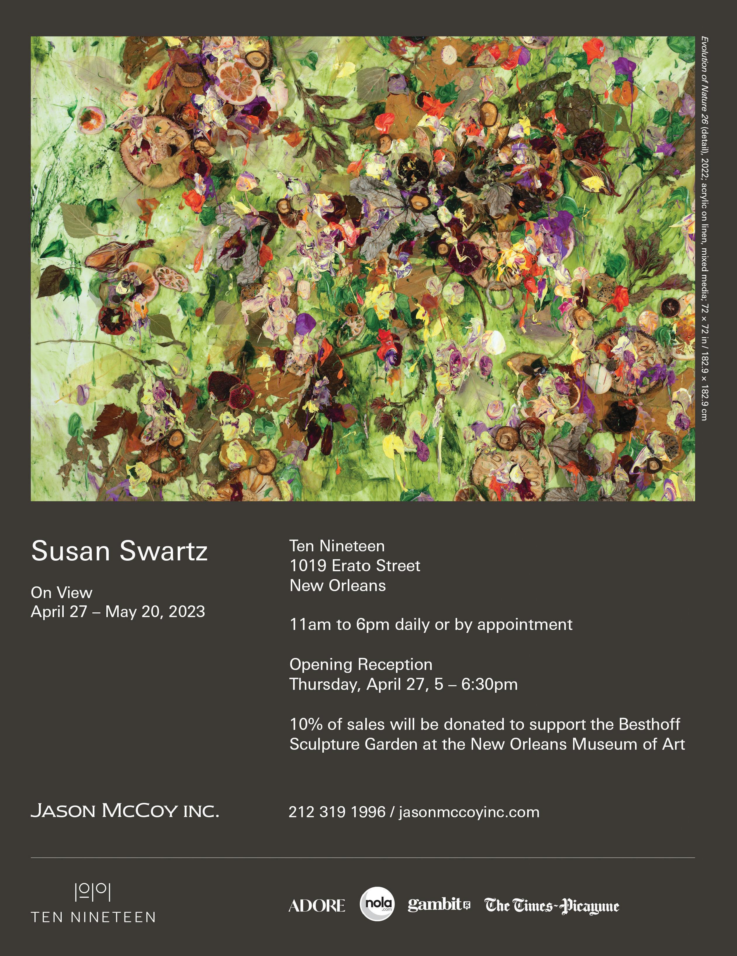 Must see: Susan Swartz, a Park City-based artist, is popping up in New Orleans with her layered abstract paintings which feature organic elements. Experience her work at Ten Nineteen (1019 Erato Street) between Thursday, April 27 and Saturday, May 20.