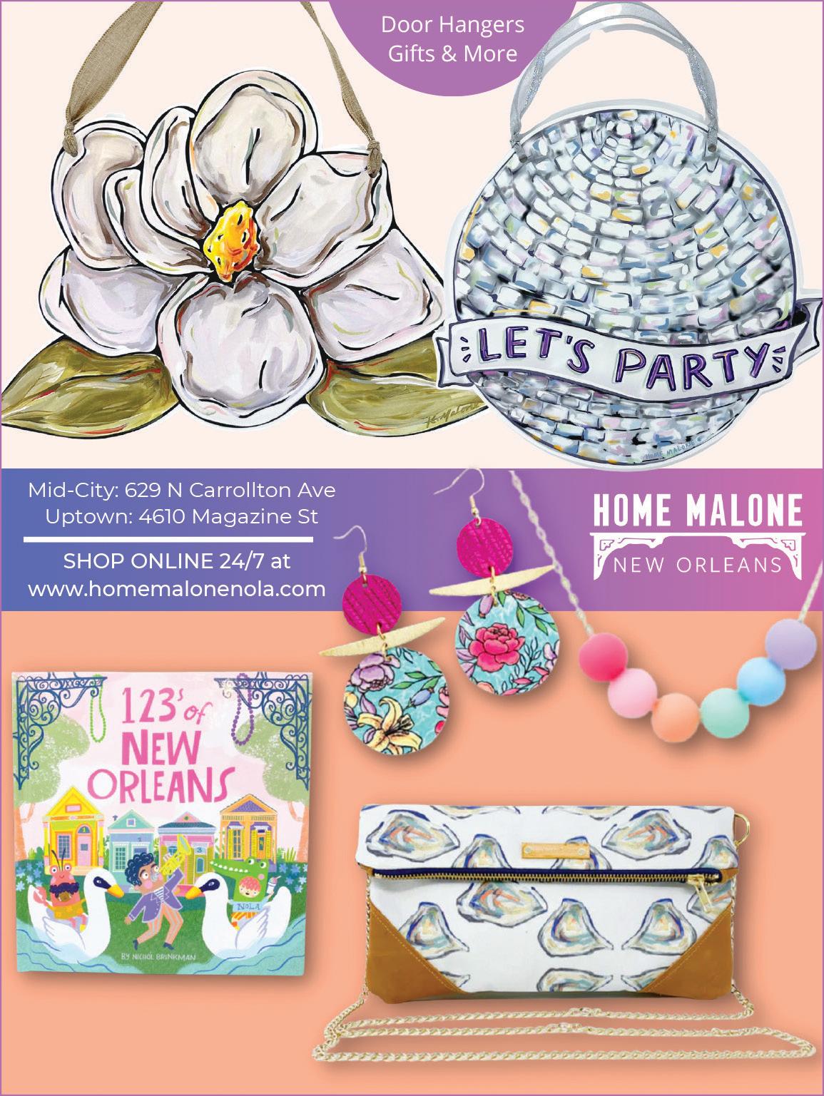 Home Malone opened its MidCity shop in November 2016, and after a few flourishing years, a second location was opened along Magazine Street in February 2019. The two locations are helmed by Kristin, carrying an array of products — home décor, food, and apparel — made by Southern artists and designers. “Our buying practices are unique in that we focus on items that aren't just designed in the South, but also made in the South. All of