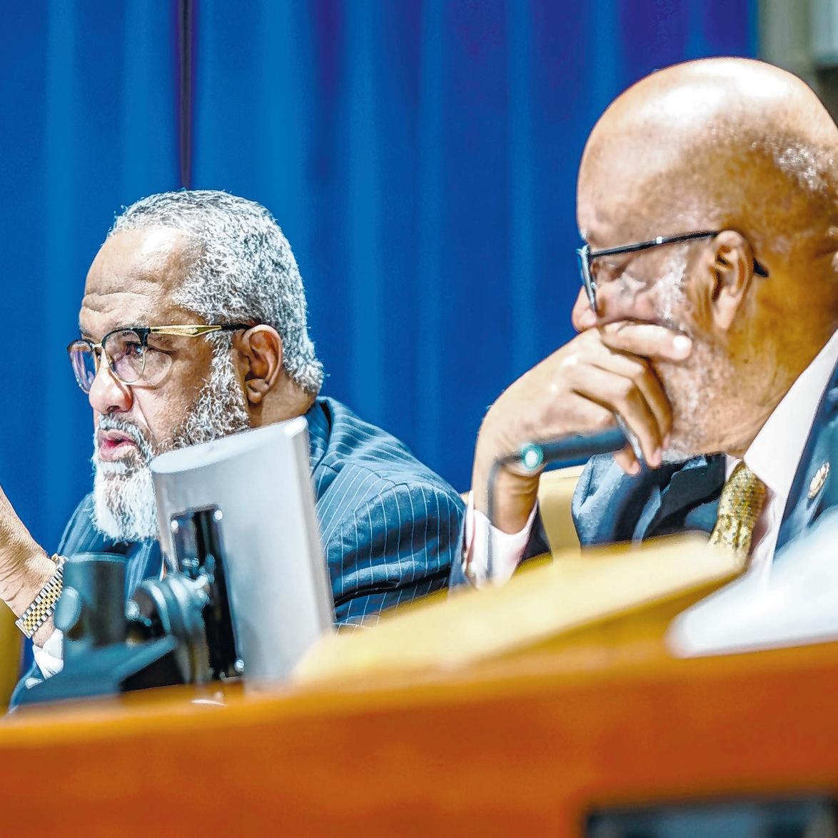 U.S. Congressmen Troy A. Carter, Sr., left, and Bennie G. Thompson hold a hearing about Operation Catahoula Crunch at the New Orleans City Council Chambers at City Hall Monday, Jan. 26, 2026.