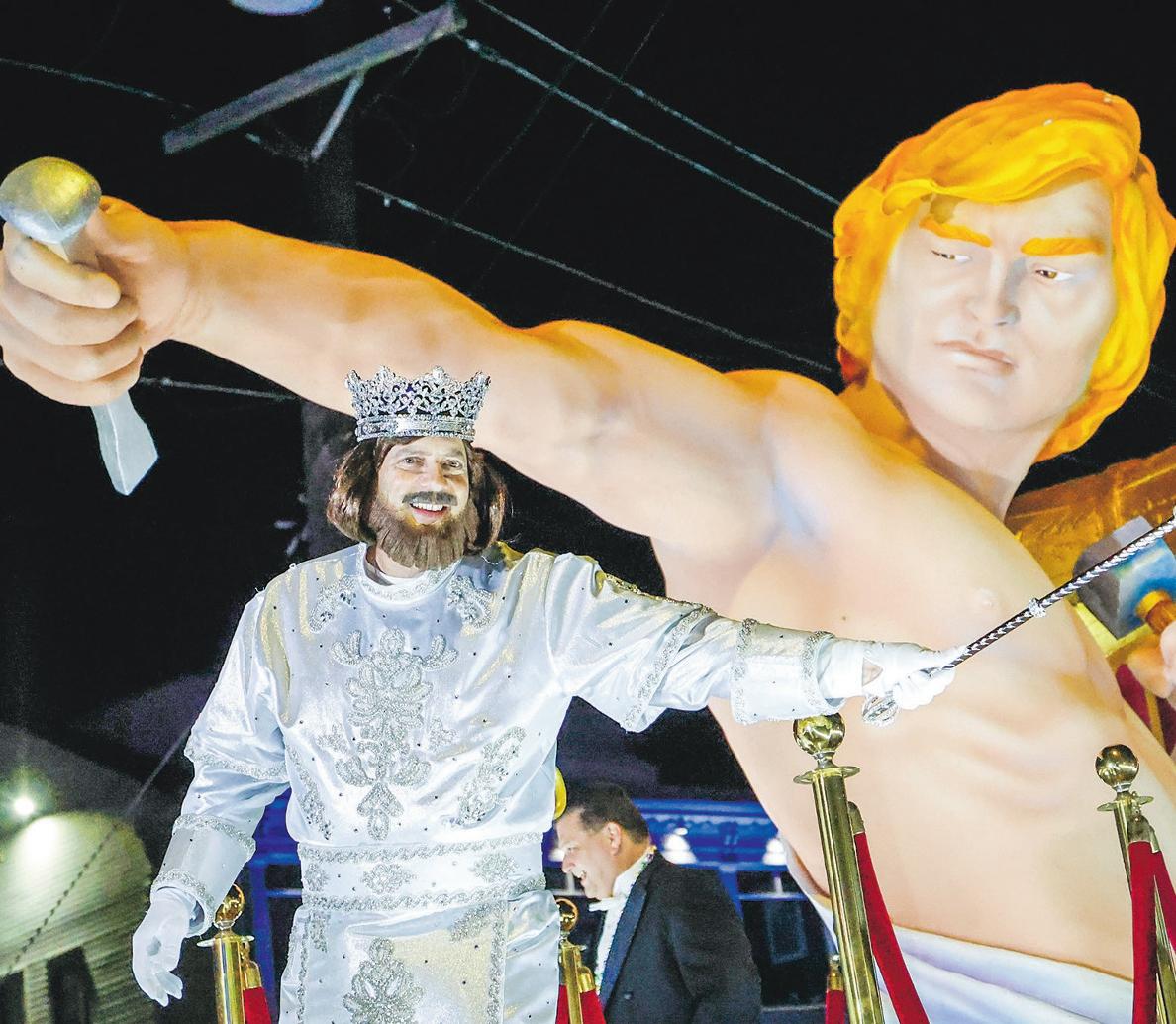 The royalty are artist Terrance Osborne and his wife Stephanie Osborne. This year is both the krewe’s and the couple’s 30th anniversaries.