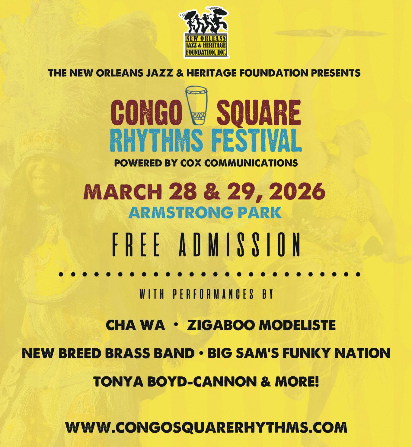 The parade will have plenty of music, with marching bands including the Southern University Human Jukebox, the St. Augustine High School Marching 100, and marching bands from Edna Karr High School, McDonogh 35, Durand’s alma mater St. Mary’s Academy and more.