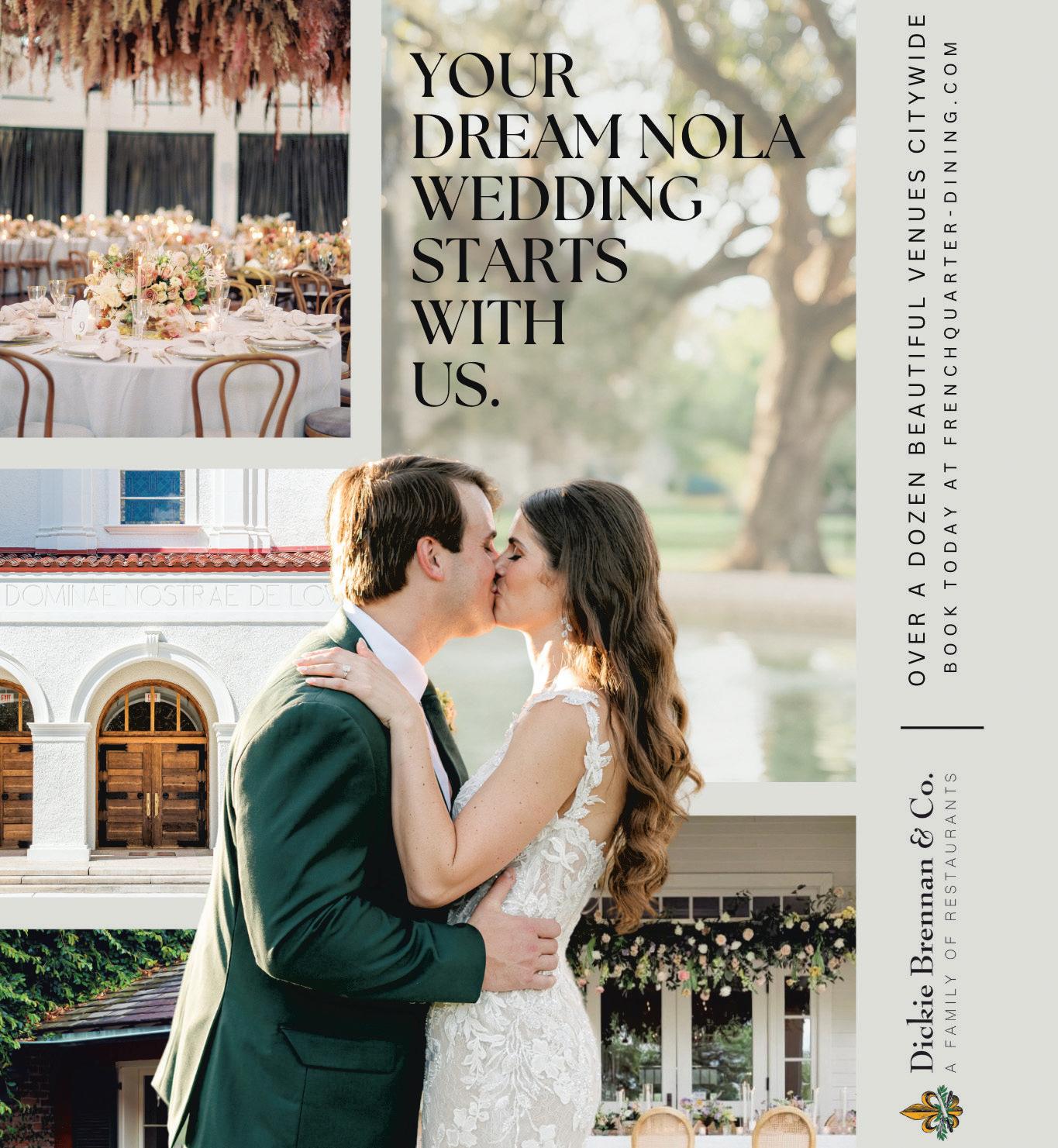 Poised to become New Orleans’ premier venue for weddings, the Higgins Hotel and Event Center pairs exquisite, era-inspired settings with an unmatched level of service and hospitality. Brides and grooms delight in exceptional on-site catering, one-onone planning, and thoughtful attention to detail. For more information, call (504) 459-0709 or fill out an RFP form at higginshotelnola.com