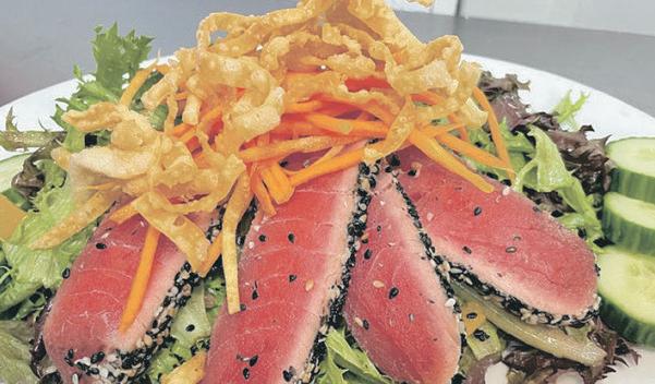 EnjoyastunningviewofLakePontchartrain whilediggingintothisrefreshingsalad.Sesamecrusted tunaisservedoverabedofspringmix,pickledpeppers, cucumbers,&carrotswithMisodressingandwontons