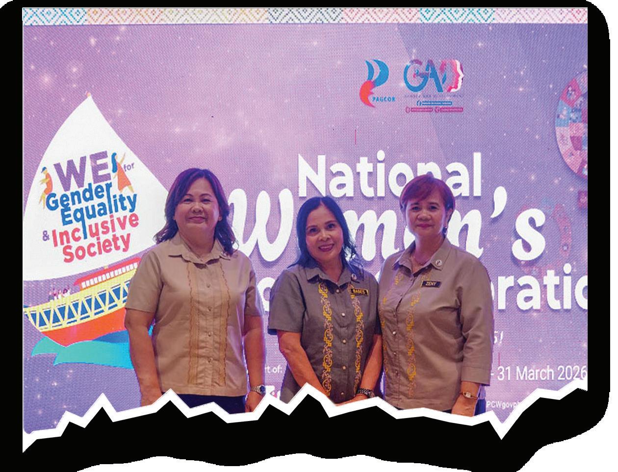 The recipients of the Dakilang Juana Awards (from left to right) Treasury Officer Zenaida Gebana, Assistant Gaming Officer Jocelyn Sales and Senior Bingo Assistant Elsa Carreon at PAGCOR’s National Women’s month in the Philippines