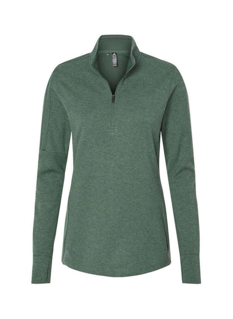 ADIDAS WOMEN'S GREEN OXIDE MELANGE 3-STRIPES QUARTER-ZIP