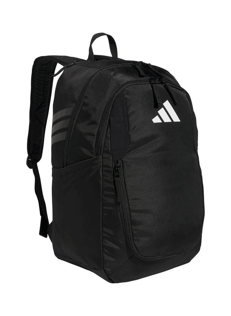 Made from lightweight, durable polyester, this versatile adidas backpack keeps stuff organized and dry thanks to a water-resistant base. Multiple zip pockets keep your gear separated, including one that can hold a size 5 soccer ball and two mesh side pockets that can each hold a 32oz. water bottle. There's also a vented pocket to store dirty gear and a clip to attach essentials. Score!