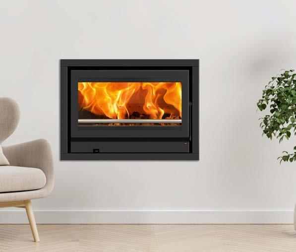 Estufa de leña Insua Eco, fabricada en acero y fundición acabado en negro. Clase energética: A+