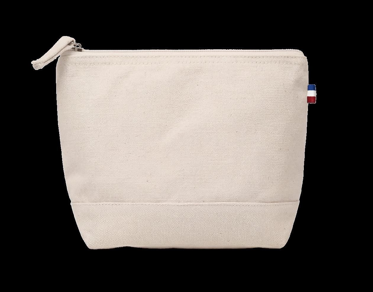 Confectionnée en France à partir de coton recyclé certifié GRS, cette trousse accueille facilement vos essentiels du quotidien. Son format compact et sa fermeture zippée avec tirette assortie la rendent pratique et facile à glisser dans tous les sacs.