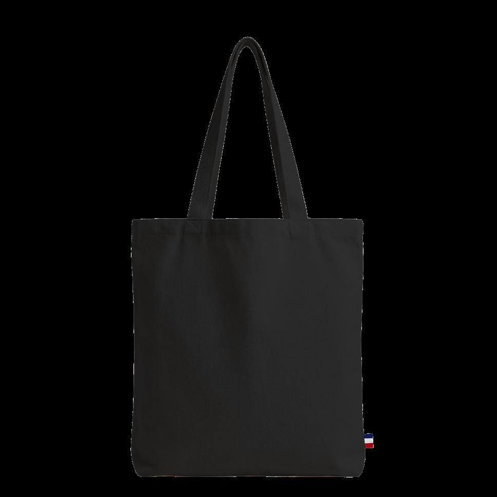 Collection de totes bags marines et noirs dans plusieurs grammages. Confectionnés en France à partir de coton et polyester recyclés, certifiés Origine France Garantie, ils sont également incroyablement solides et durables.