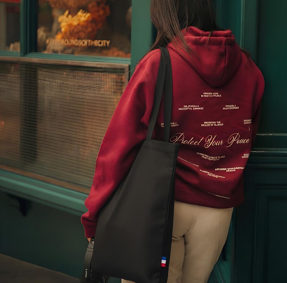 Confectionné en France à partir de coton recyclé, ce sac est non seulement esthétique, mais également respectueux de l’environnement. Sa grande poche frontale offre un espace de rangement supplémentaire pour vos essentiels.