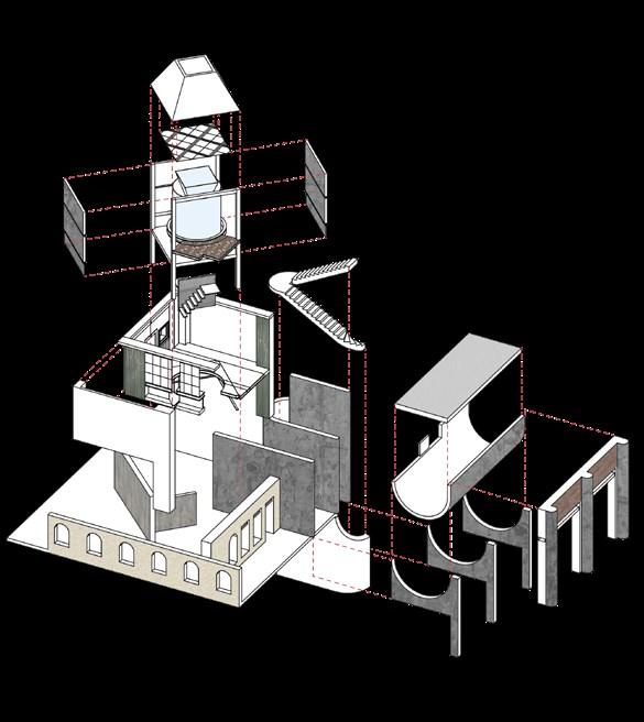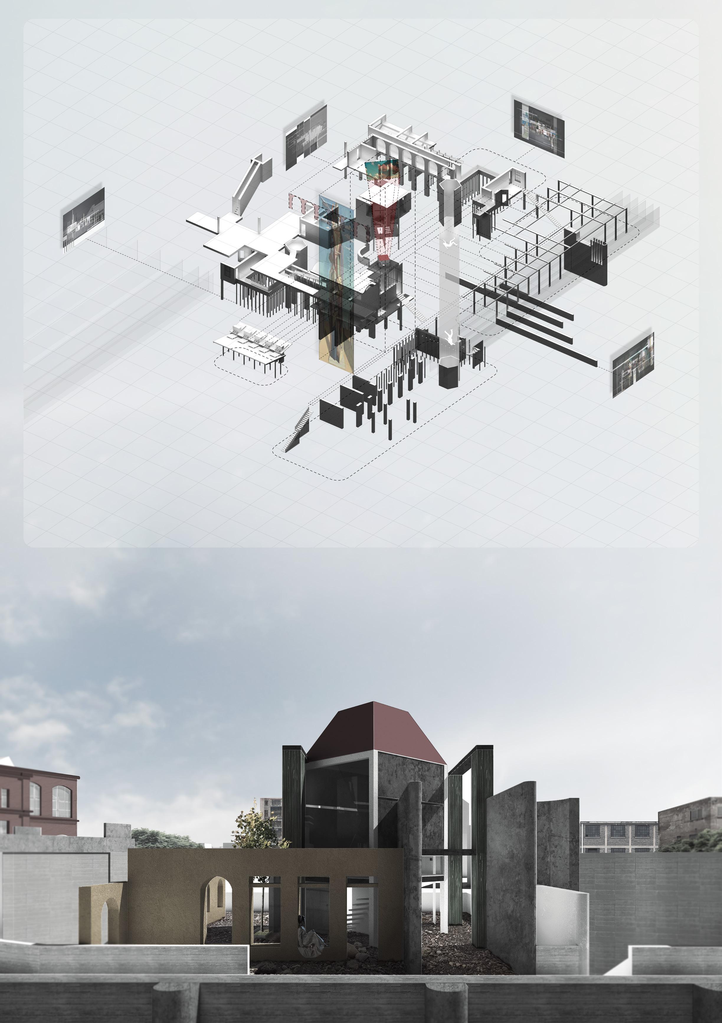 The project explores themes of place, memory, and narrative as palimpsests, to propose new architectures within the context of Pilsen. To do this it draws upon the alchemical industry of scent making and the melancholic art of the surrealists. The architecture introduces colonnades, canopies, chimneys and walkways as metaphors for the memories of Pilsen’s former industrial life and in doing so it reimagines the art of De Chirico as a set of motifs for new spatial and tectonic imaginings.