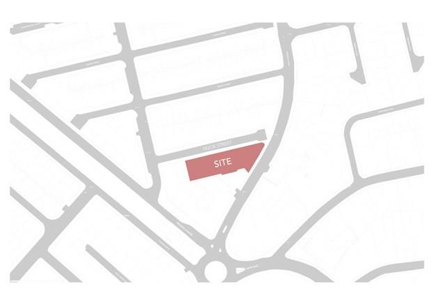 The construction site consists of derelict terraced houses and the lawn by Ducie Street.