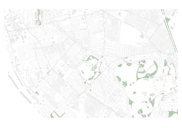Although public parks can be seen according to the diagram, they are concentrated in lowdensity residential areas. In the high-density part of the area, parks can be barely seen.