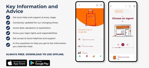 JustGoodWorkisafreeinteractivemobileapp,givingjob-seekersandworkerscriticalinformationandadviceforeverythingneeded on the journey to work, from recruitment, to employment and life in a new destination, to moving on or returning home. Supports multiple languages, provides important checklists and facility for storing important documents, advice on good recruitment practices, immigration requirements, travel and practicalities and access to frequently asked questions. We encourage all job applicants to download the ‘Just goodwork app’.
