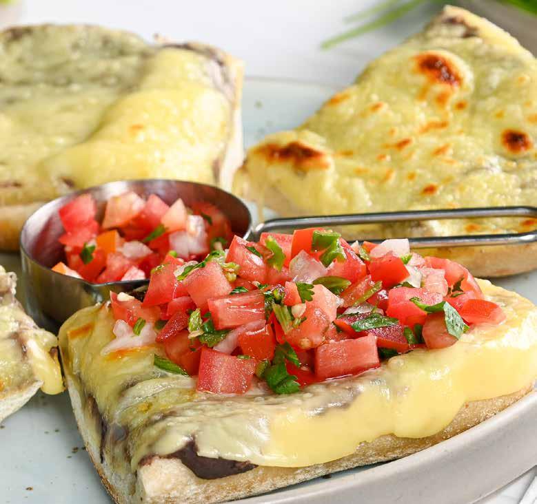 Pan baguette de masa madre con frijoles y queso, servido con salsa mexicana. (2 pz)
