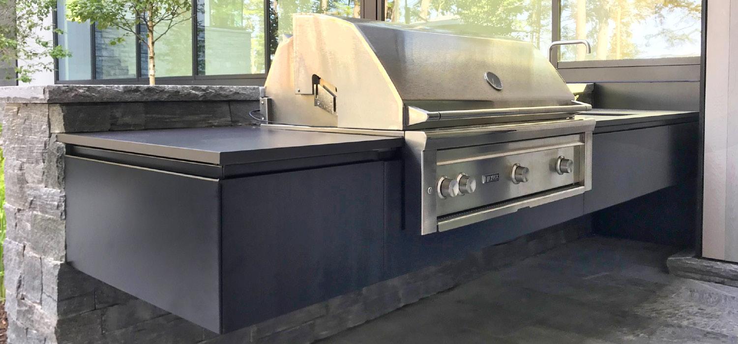 Living outdoor kitchens are feature rich and built to endure. The very best of contemporary design is now available in 100% weather durable materials.