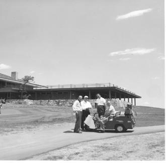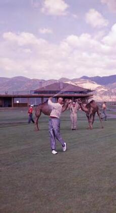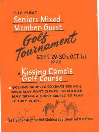 Construction of the course began in the late fifties. The design called for eighteen holes covering 7,000 yards in a unique, star-shaped configuration that allowed for four returns to the new clubhouse. The clubhouse had a Moroccan theme and a wraparound "widow's walk" balcony, which made it possible for "golf widows" to watch for their returning husbands. Named for the famous Kissing Camels rock formation nearby, the club officially opened for play in June, 1961. Bill Lawe, the first pro, thought he'd try on the job for size...and stayed for thirty-eight years.