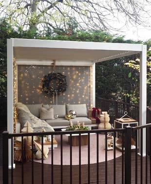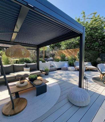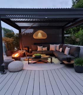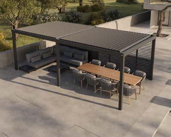 Ta modułowa altana posiada w pełni rozsuwany, lamelowy dach, dzięki czemu możesz wybrać, czy chcesz siedzieć na słońcu czy w cieniu. Dodatkową atmosferę tworzy zintegrowane z konstrukcją oświetlenie LED.