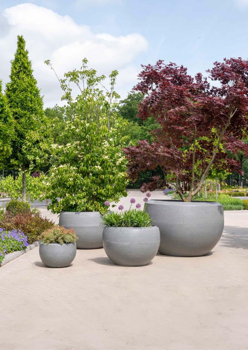 Kolekcja Arc Granite to nie tylko piękno, ale również funkcjonalność. Donice są w 100% wodoszczelne, dzięki czemu nadają się do użytku wewnętrznego. Ich gładki materiał ułatwia czyszczenie, co sprawia, że są one idealne do postawienia na zewnątrz, w każdych warunkach pogodowych. Bogata faktura i naturalne ziarno wykończenia granitowego tworzą wyrazisty kontrast wobec bujnej zieleni, dodając głębi i charakteru Twoim zewnętrznym przestrzeniom.