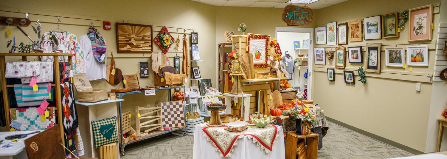 UNIQUE FINDS, LOCAL TREASURES. Explore a variety of shopping experiences. Linden features stylish apparel, jewelry, greeting cards, local foods, and essentials. The Artisans Corner showcases handcrafted pottery, stained glass, paintings, quilts, and more—created by resident artisans. Share & Care Thrift Shop offers an ever-changing selection of furniture, housewares, jewelry and décor.