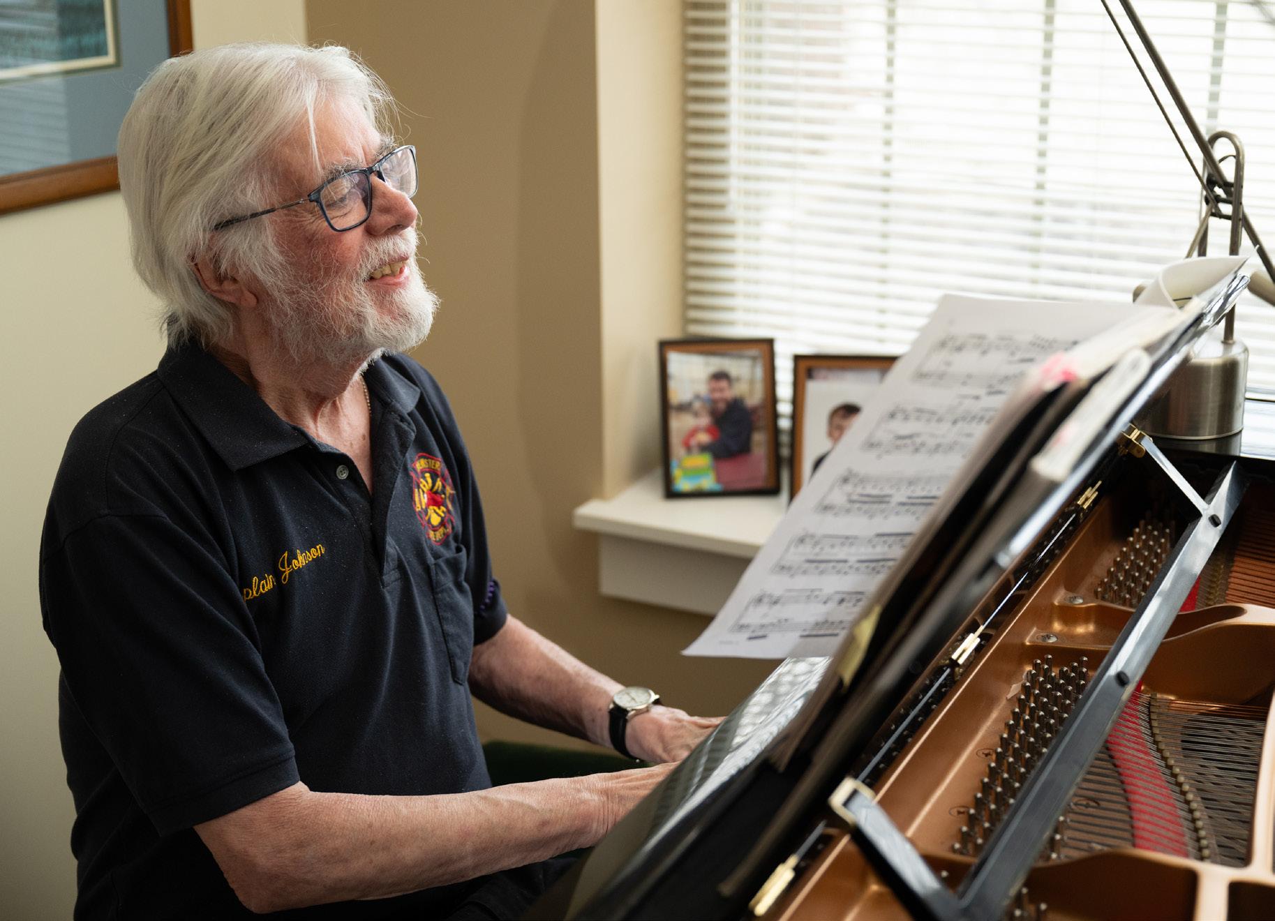 Over the years, the two played with various groups, including the New Holland Band. Their first introduction to Garden Spot Village was as performers in the band.