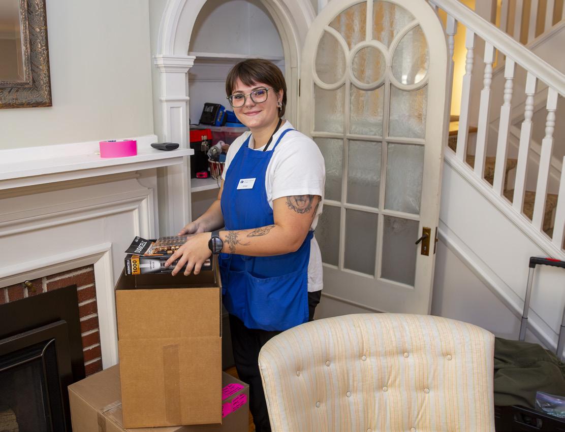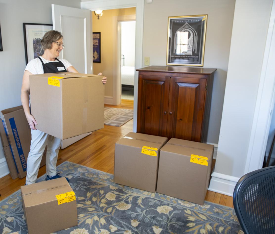 Leaning on her experience as a quality improvement consultant, Jill developed a move management process that is very structured, providing consistency, efficiency and a high level of customer satisfaction. “Everybody does everything the same way,” she says. “From the way we wrap items to a standardized labeling format, we are consistent.” Prior to a move, clients are given a pink plastic tote for tucking away essential items like their checkbook, legal papers or anything they might need to complete their move. “No one wants to be digging in a stack of boxes for a checkbook, wallet or keys that were packed accidently.”