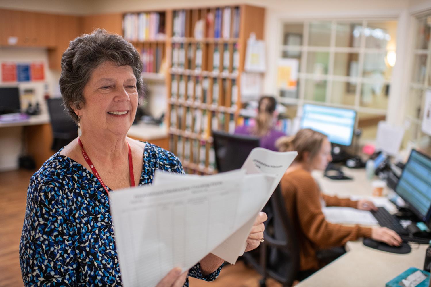 Suzanne finds that structure working on Wednesdays and Fridays. She completes the majority of her work on a computer in her office. She is one of three RNACs whose job is to ensure that all of the medical documentation is accurate for each resident in the skilled nursing households.