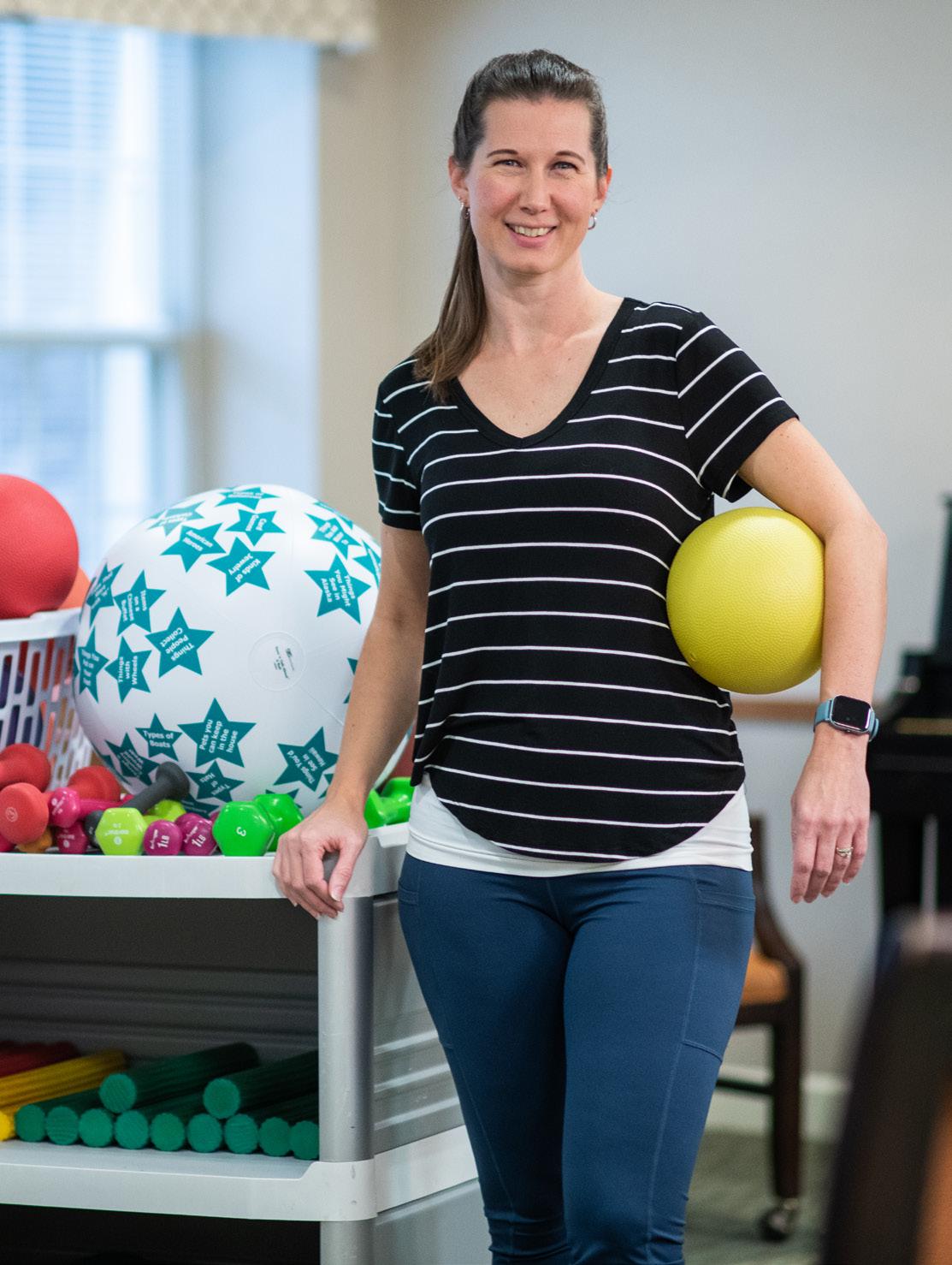 “Garden Spot offers so many opportunities for people to maintain their health and fitness level,” says Andrea Smoker, fitness coordinator. A certified personal trainer, Andrea brings her passion for exercise and healthy living to her work at Garden Spot. In the Wellness Center, she teaches a variety of classes, including yoga, boxing and balance. In addition, Andrea takes her balance and exercise classes to residents in Meadow View Memory Care, Mountain View Personal Care and DayBreak. These small-group lessons engage people and get them moving.