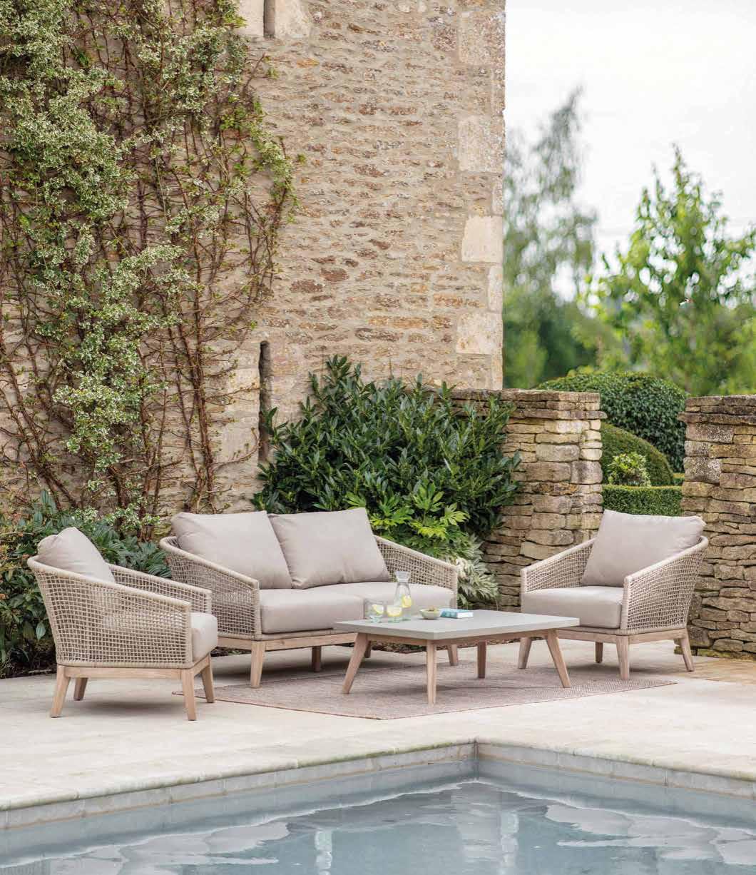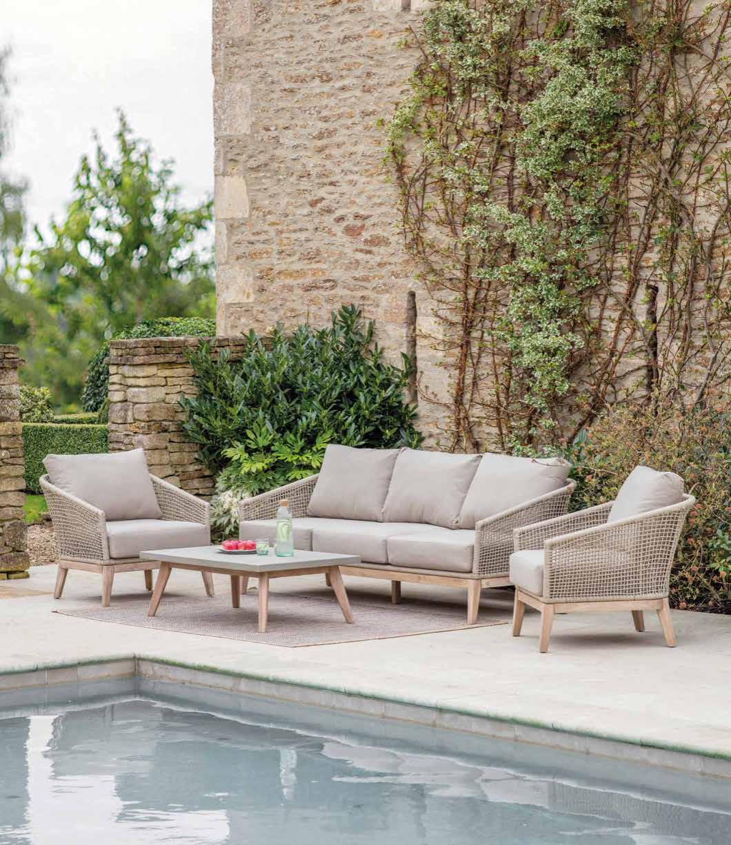 Featuring everything needed to conjure up the perfect outside room, our Lynton range makes a destination of the garden. Acacia wood and neatly woven rope combine to create texturally beautiful designs which offer good support and excellent sitting comfort, thanks to the addition of their seat pads and luxuriously thick back cushions.