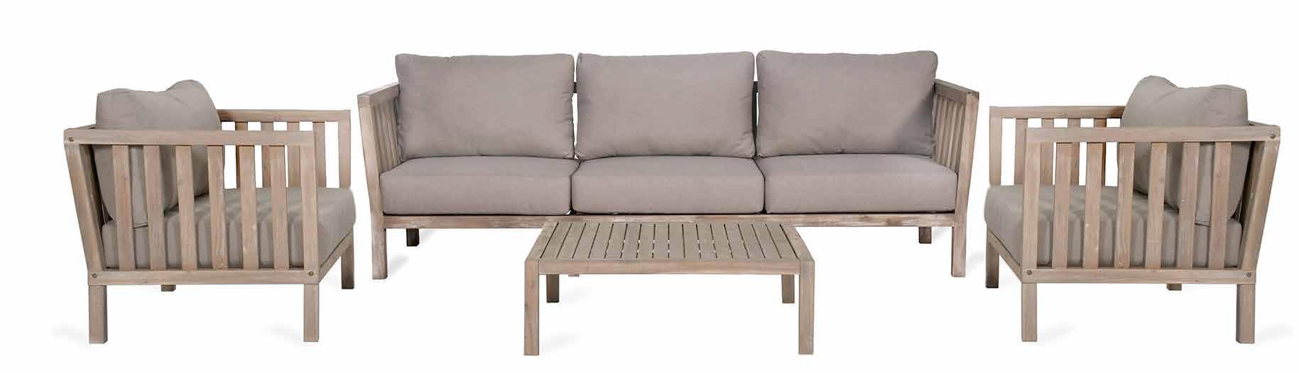 FUAC14 | Acacia Wood | Sofa: h:67 x w:220 x d:75cm | Armchair x2: h:67 x w:99 x d:75cm | Coffee Table: h:30 x w:120 x d:70cm SRP £3,000
