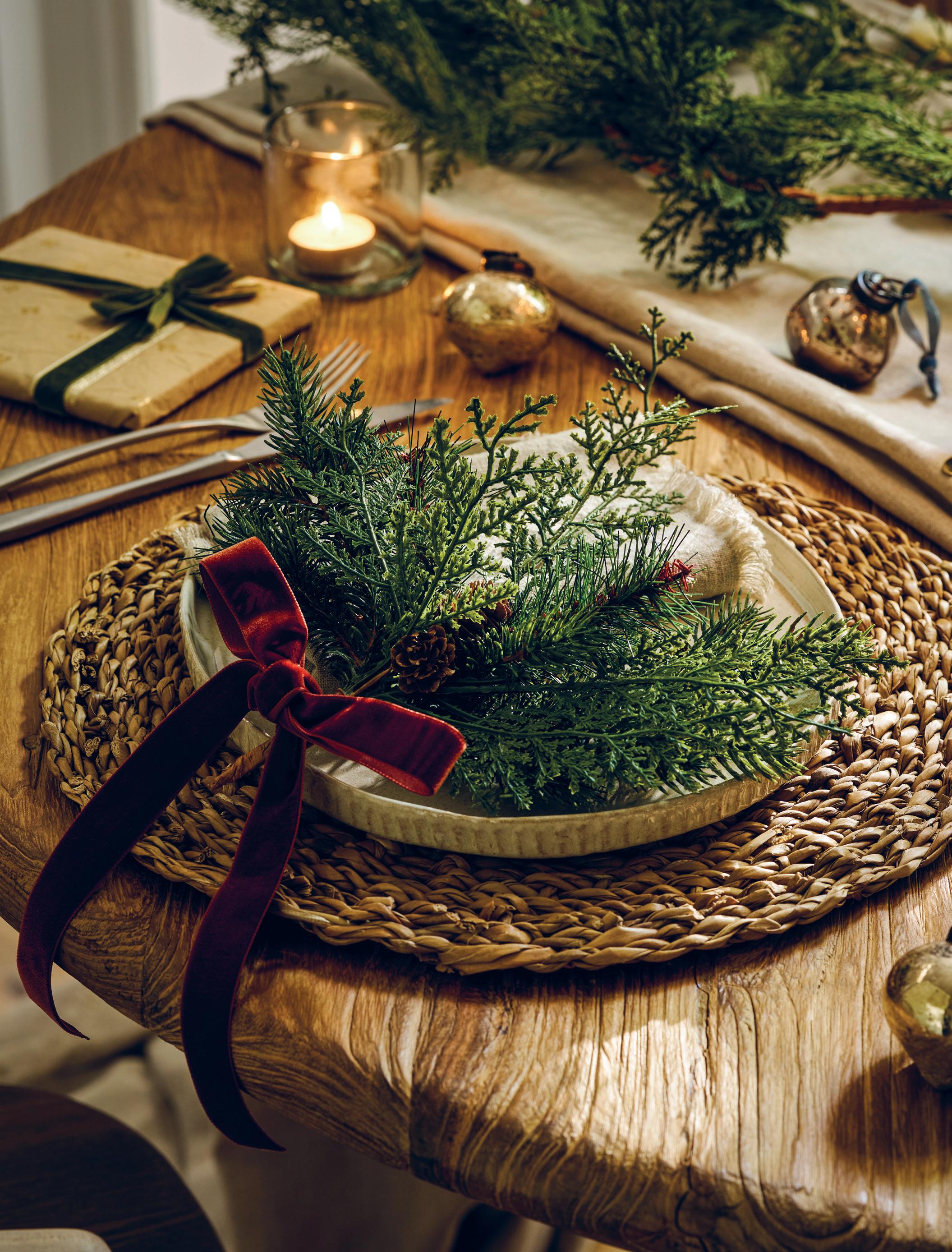 Layer natural textures with olive stoneware to create festive tablescapes that feel stylish, grounded, and welcoming.