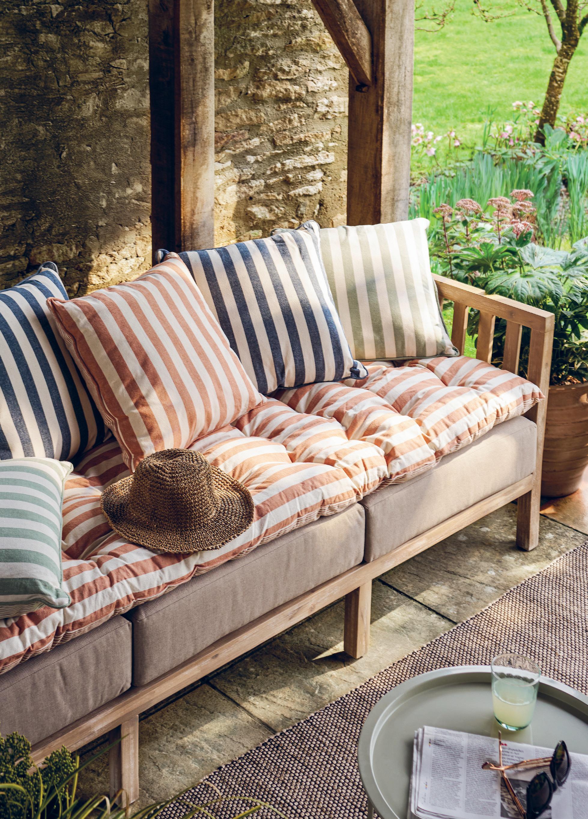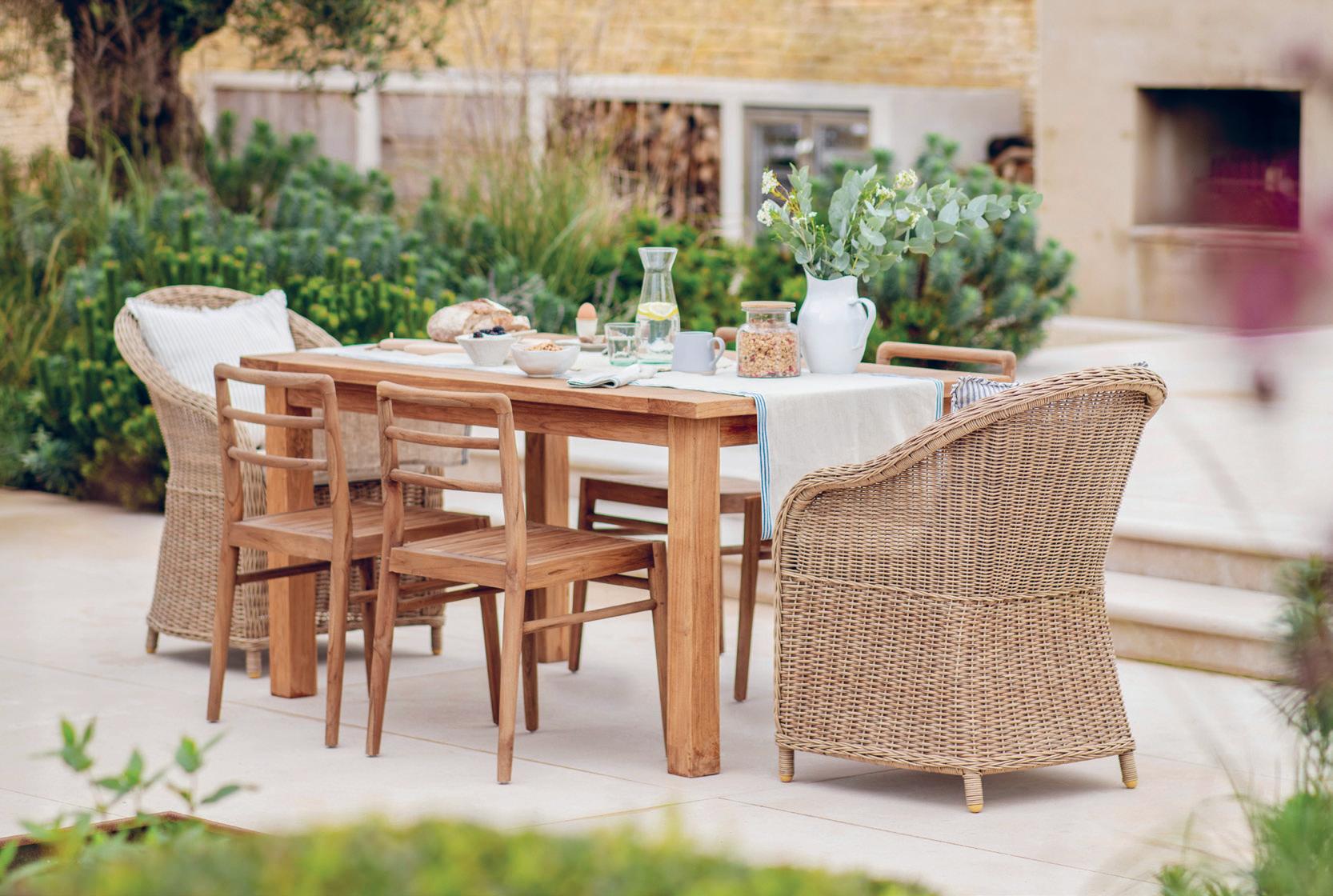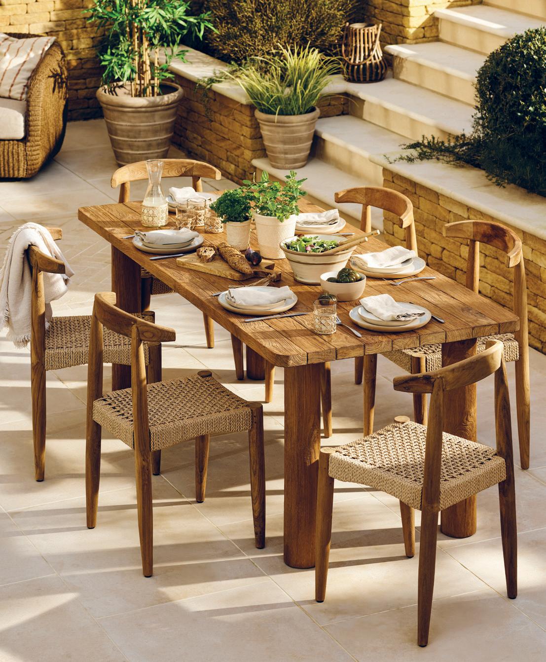 Grove Outdoor Cushion £40 6| Harlton Wide Striped Cushion £35 7| Radcot Rectangular Dining Table £2,050 8| Hawthorne Dining Chair – Set of 2 £1,100 9| Wychwood Stripe Throw £45 10| Star Doormat £30 11| Haberton Planter £150