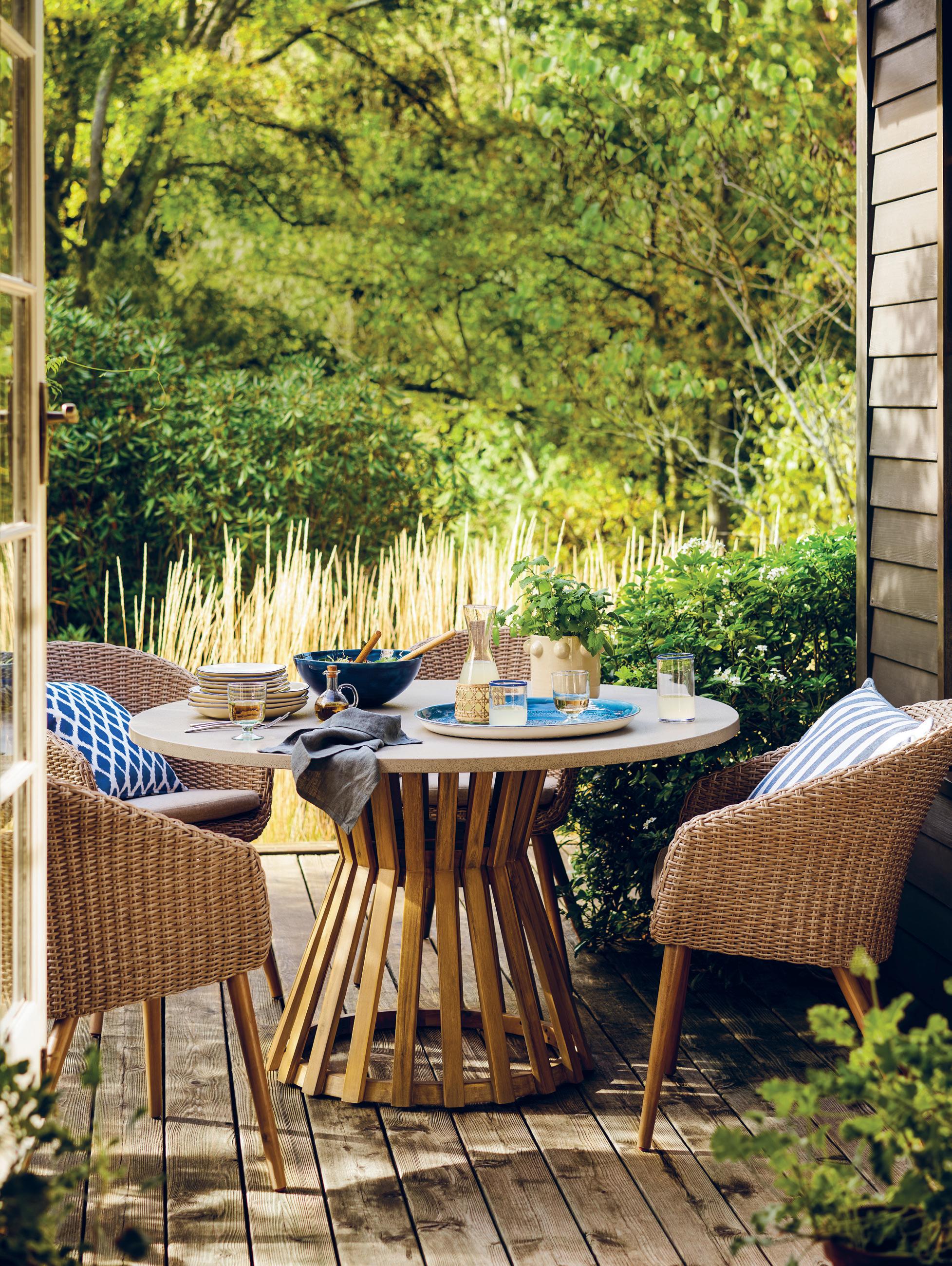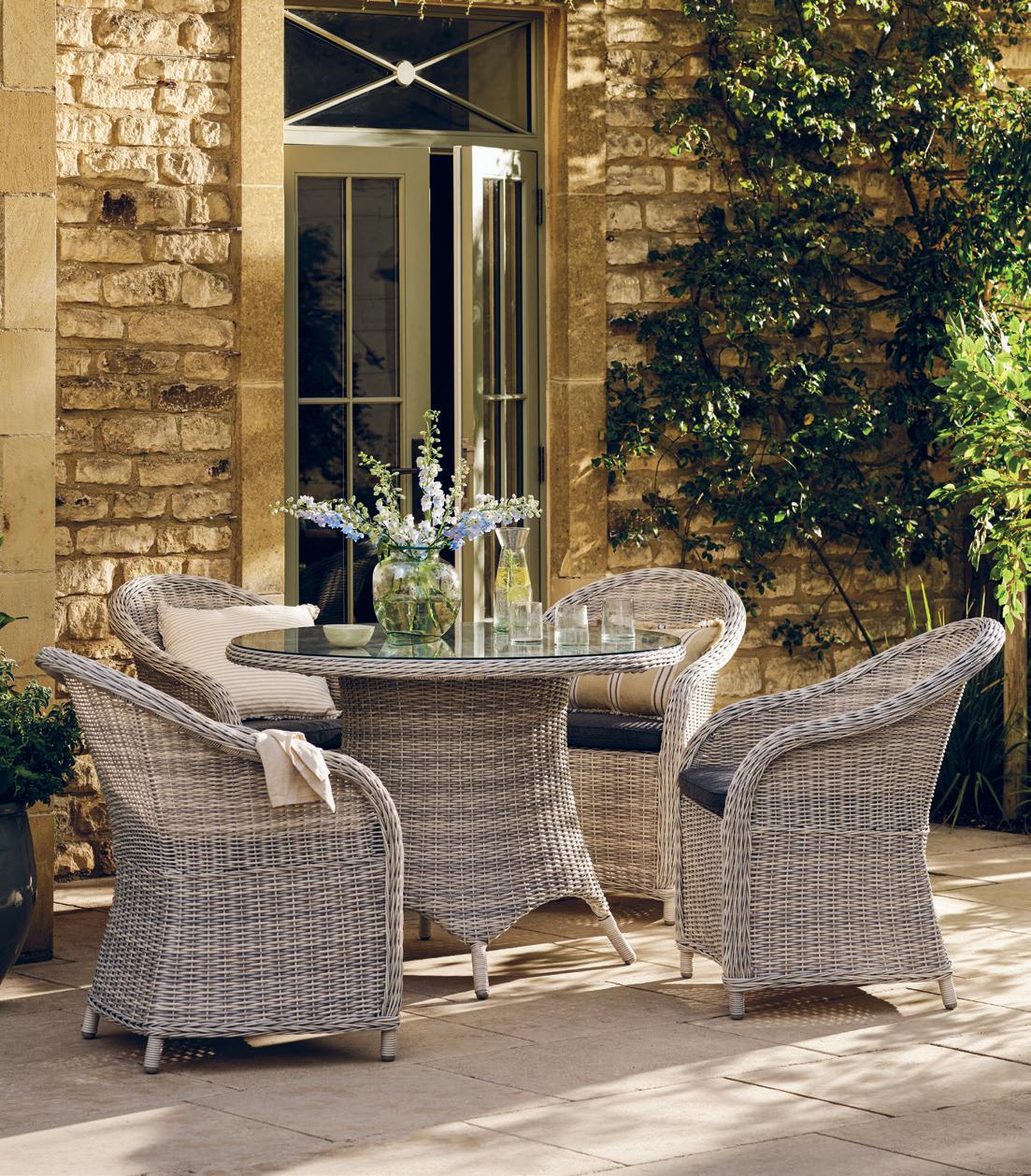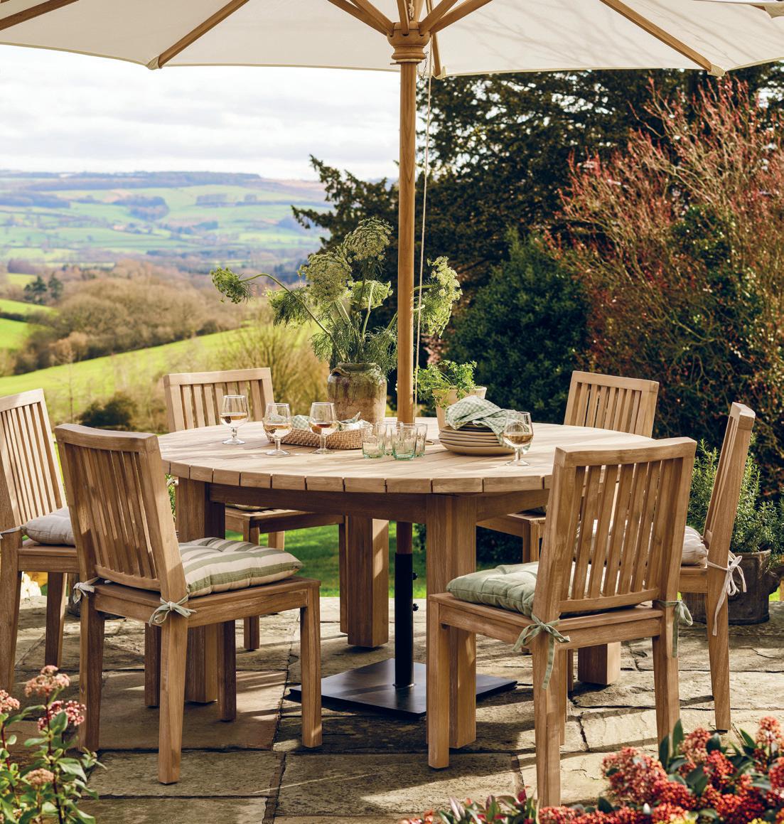 Grove Outdoor Cushion £40 6| Harlton Wide Striped Cushion £35 7| Radcot Rectangular Dining Table £2,050 8| Hawthorne Dining Chair – Set of 2 £1,100 9| Wychwood Stripe Throw £45 10| Star Doormat £30 11| Haberton Planter £150