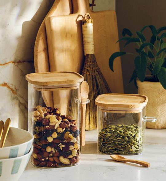 The Ithaca collection: Colander £38; Berry Bowl £15; Oil Bottle £18; Lemon Squeezer £10; Salt Cellar £15; Garlic Store £26; Jug £44