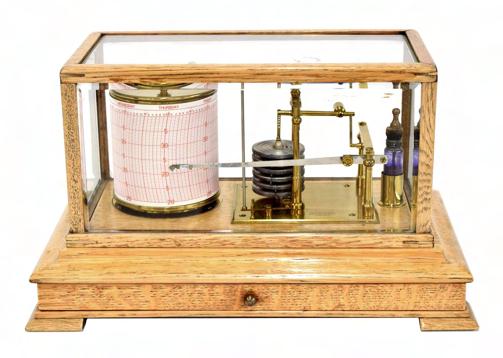 ** This barograph has an eight day movement and eight linked Vidi bellows, a similar barograph is illustrated in Barometers: Aneroid and Barographs by Edwin Banfield, page 115, fig. 101