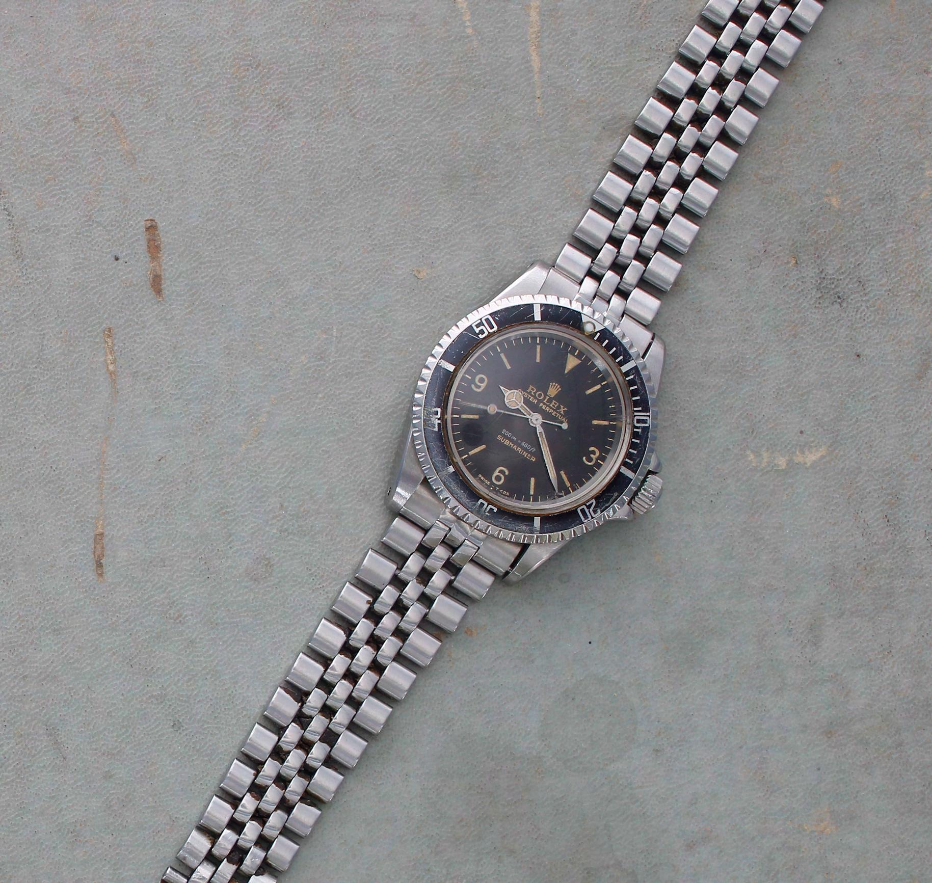 Rare Rolex Oyster Perpetual Submariner stainless steel gentleman's wristwatch with the 3-6-9 Explorer dial, reference no. 5513, circa 1964, serial no. 1170xxx, black gloss 'Swiss 'T<25' single print dial, with small minute markers, hour baton markers, quarter 3-6-9 Arabic numerals, gilt and silvered dial printing 'Rolex Oyster Perpetual 200m=660ft Submariner', Mercedes hands with sweep centre seconds, Oyster case with a black calibrated bezel insert, crown guards with screw-down crown, calibre 1530 26 jewel movement, the case back stamped '5513' and dated 'III.64', Rolex USA jubilee bracelet with 50 end links, case, dial and movement signed, bezel diameter 40mm £70,000-100,000