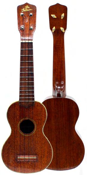 Rare late 1920s Gibson Uke-1 ukulele, inscribed 'The Gibson' to the head, with ivory banded table and ivory pegs, within the original fitted case