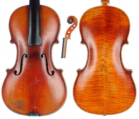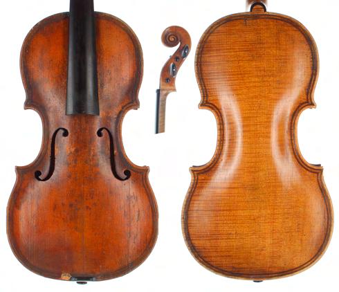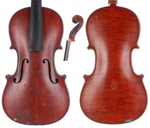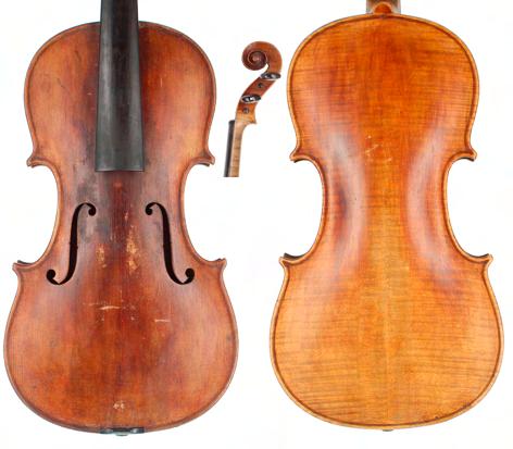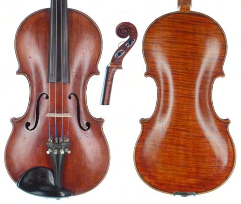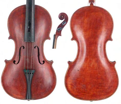 **The varnish on the table of this instrument has been stripped and a sound post crack repaired. The instrument is also sold with numerous historical receipts from Edward Withers Limited and J.P . Guivier & Co Limited. There are also several black and white photographs of the instrument before the varnish was taken off the table. A bridge, tailpiece, sound post and strings also accompany the lot £3000-5000