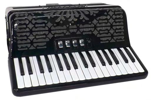 Moreschi piano accordion with seventy-two buttons and five switches, black finish, soft case £400-800