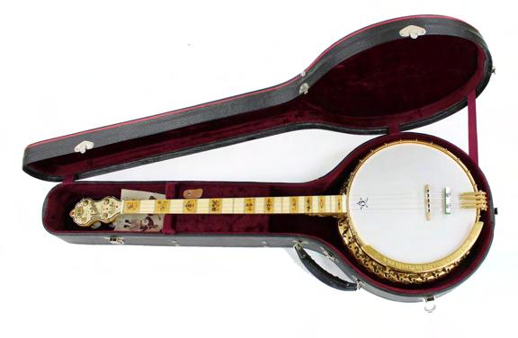 Very fine and unique Bacon & Day Montana Silver Bell Ne Plus Ultra No. 6 banjo, with ornate gold plated pierced and engraved resonator, inscribed B & D Silver Bell no. 6 Ne Plus Ultra on the resonator ring guard, also inscribed on the headstock, with ivorine inlaid back, 11" skin and decorative inlay to the fretboard, also carved with a dragon to the heel, within the original fitted case £5000-7000