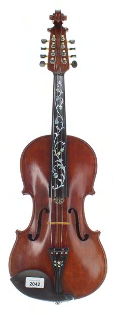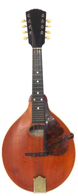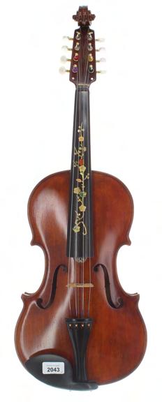 Interesting twelve string mandolin by and labelled José Gomez & Miji Calle Corruntes 110..., with chevron banded spruce table and butterfly decorated scratchplate, with open peg box and the initials SHH inlaid to the top, within original fitted mahogany case **This instrument was probably made in South America in the late 19th century £100-150