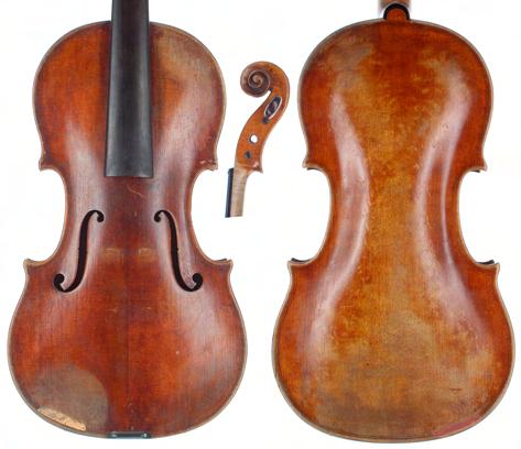 19th century German violin possibly Lowendall, labelled and copy of Laurentius Storioni..., also stamped with the monogram SL below the button, 14 3/16", 36cm £500-700