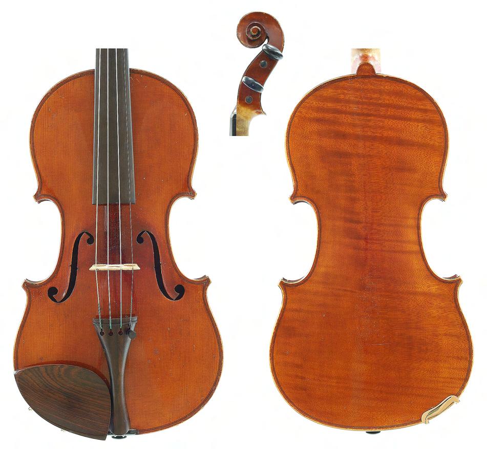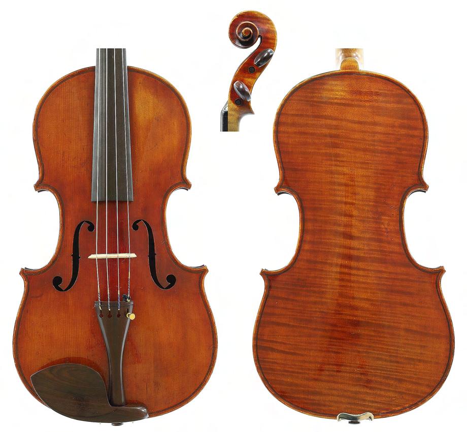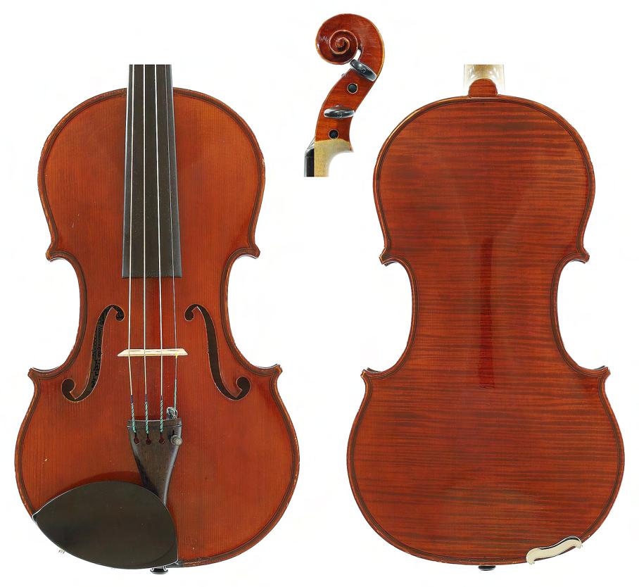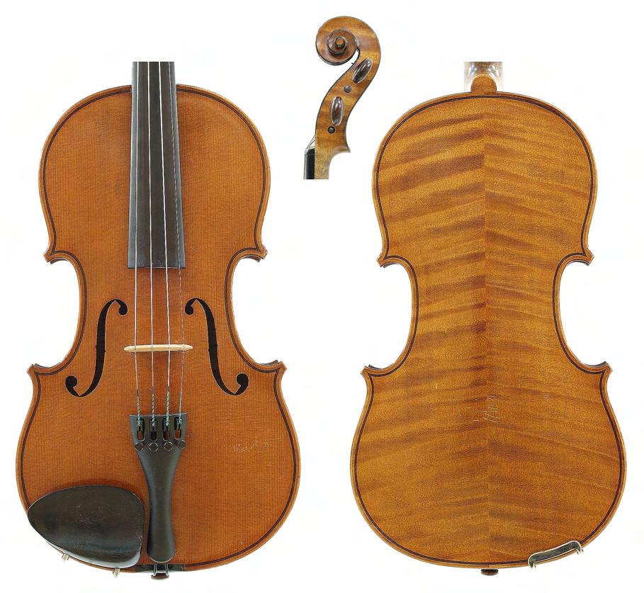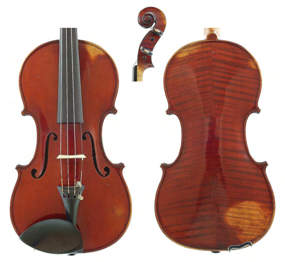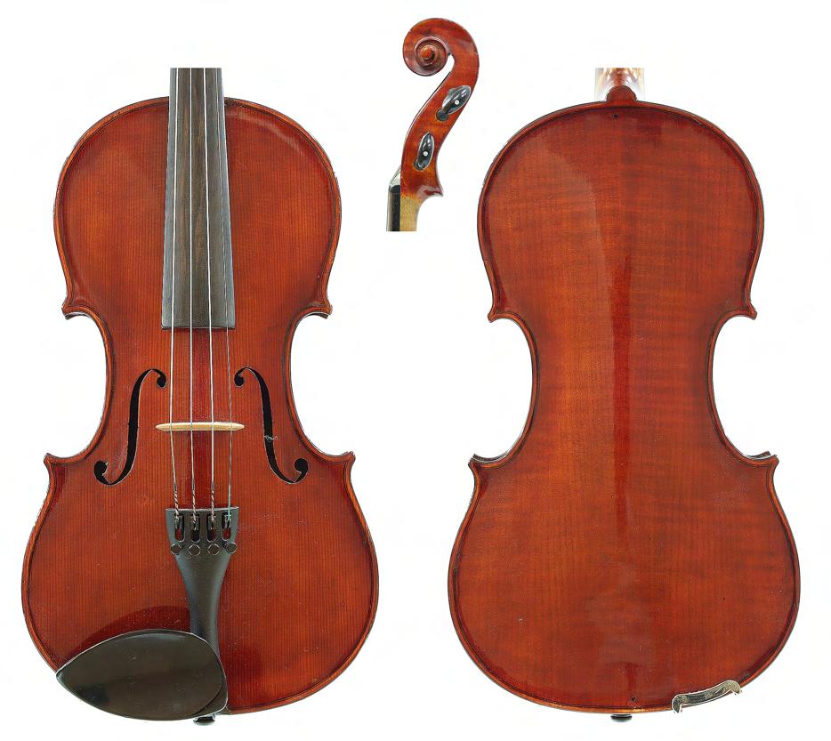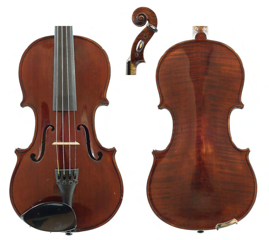 Good German viola labelled Neu-Cremona, Kunstinstrumentenbau, Gesellschaft m.b.H, Berlin, Made by Neu-Cremona Berlin, 1915, also signed on another label below, the two piece back of faint medium curl with similar wood to the sides and head, the table of a medium width grain and the varnish of a reddish-brown colour on a golden ground, 15 3/8", 39.10cm £1200-1600