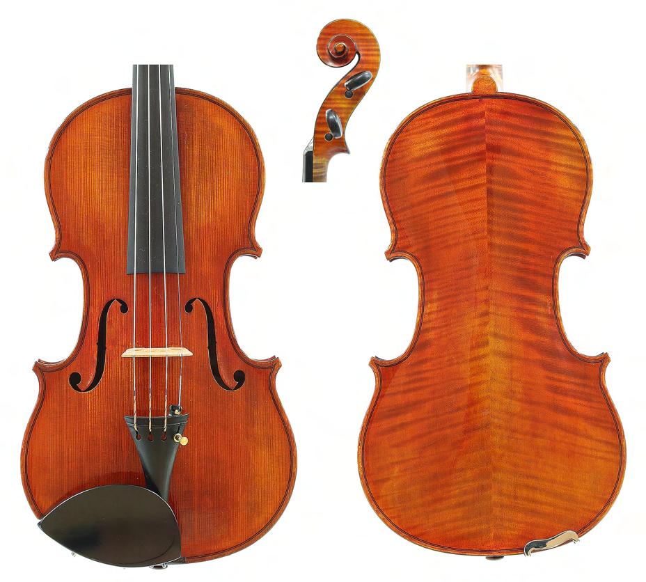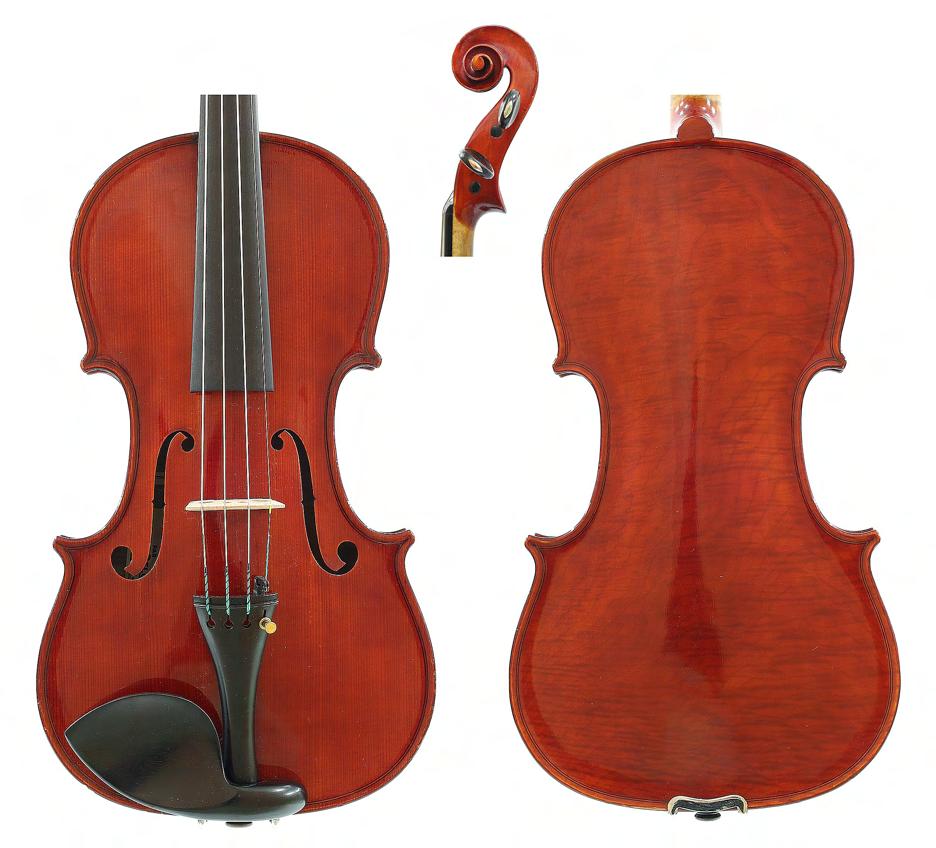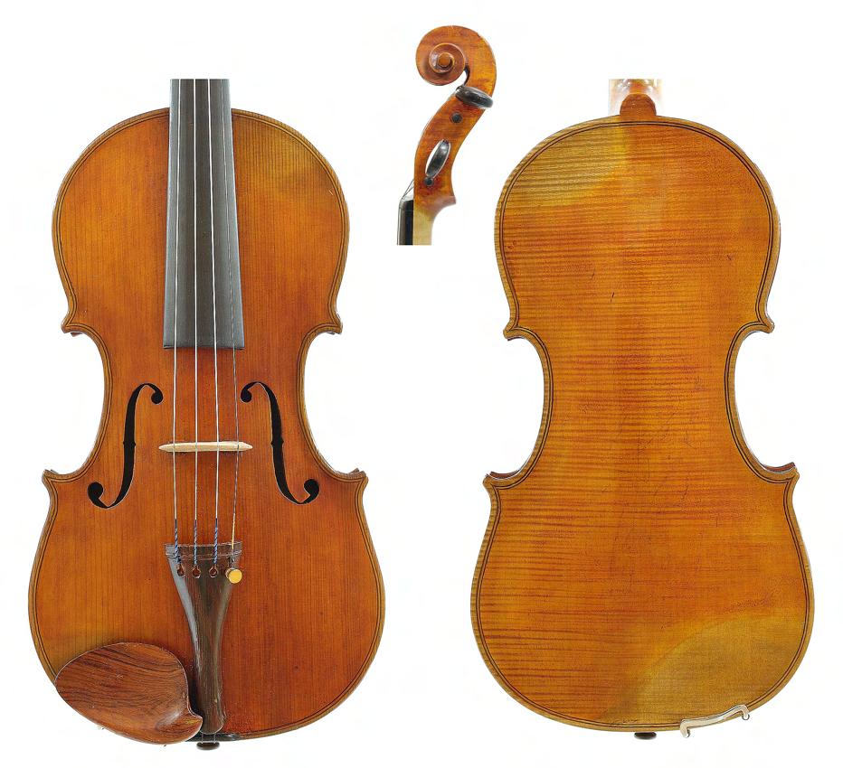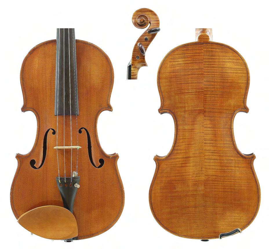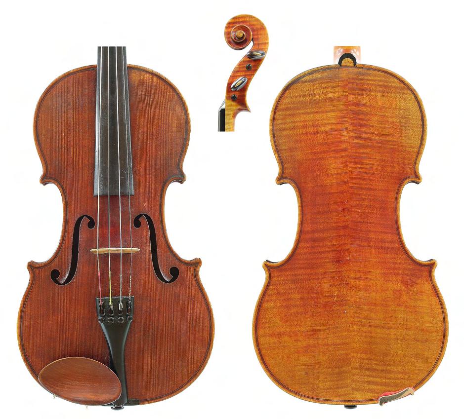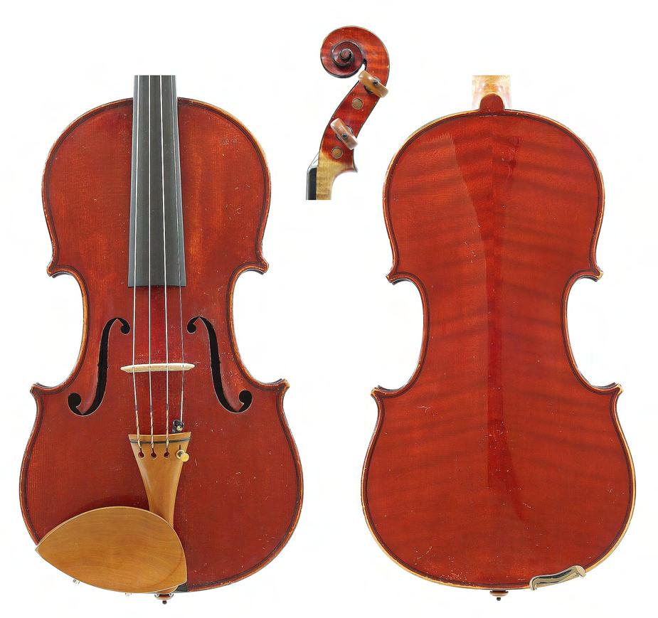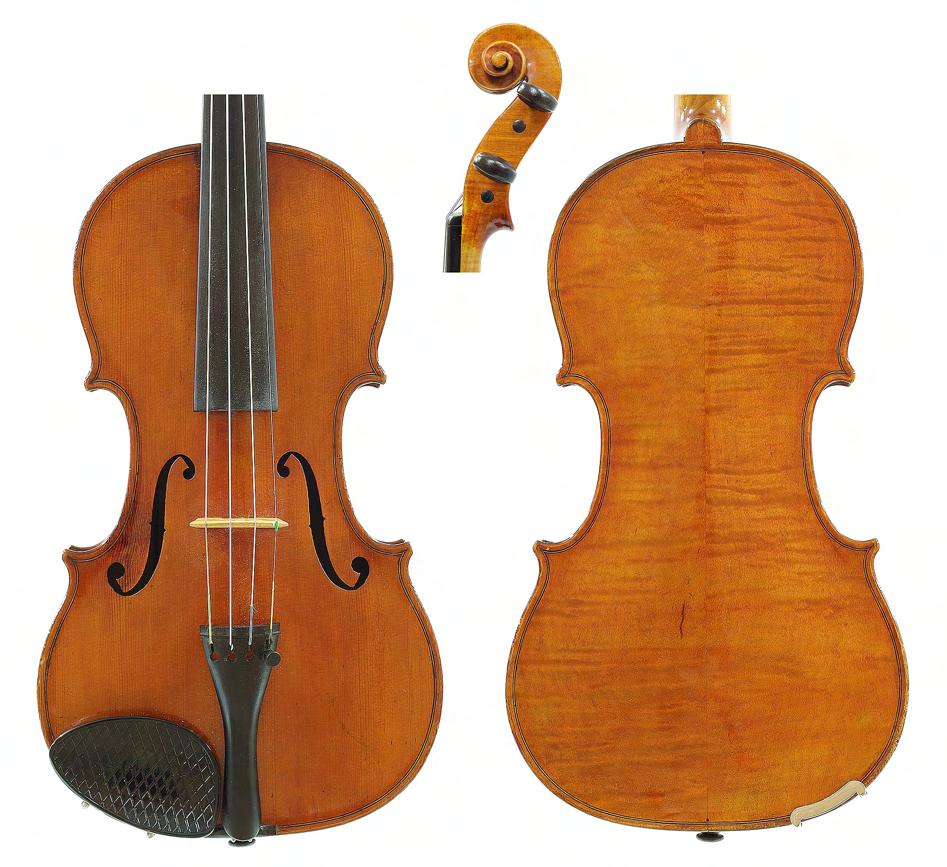Good German viola labelled Neu-Cremona, Kunstinstrumentenbau, Gesellschaft m.b.H, Berlin, Made by Neu-Cremona Berlin, 1915, also signed on another label below, the two piece back of faint medium curl with similar wood to the sides and head, the table of a medium width grain and the varnish of a reddish-brown colour on a golden ground, 15 3/8", 39.10cm £1200-1600