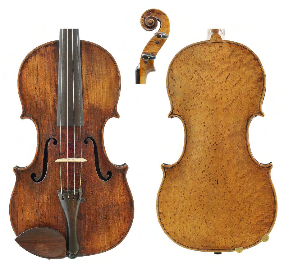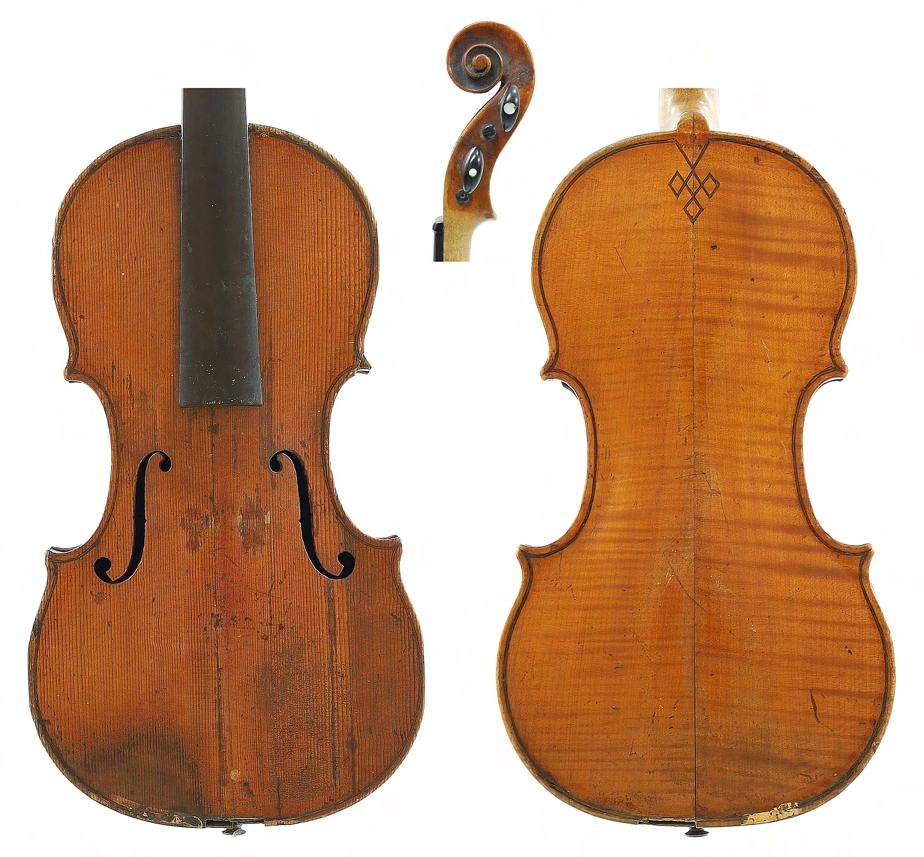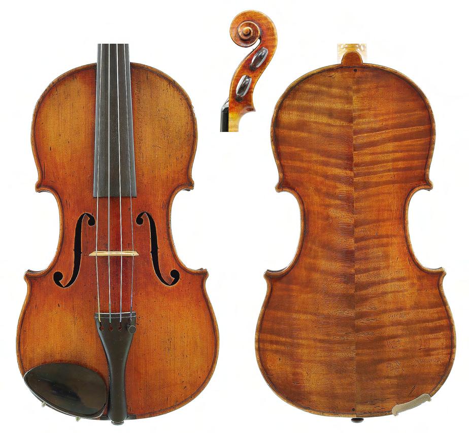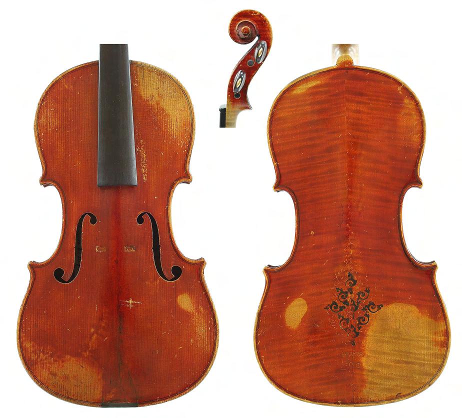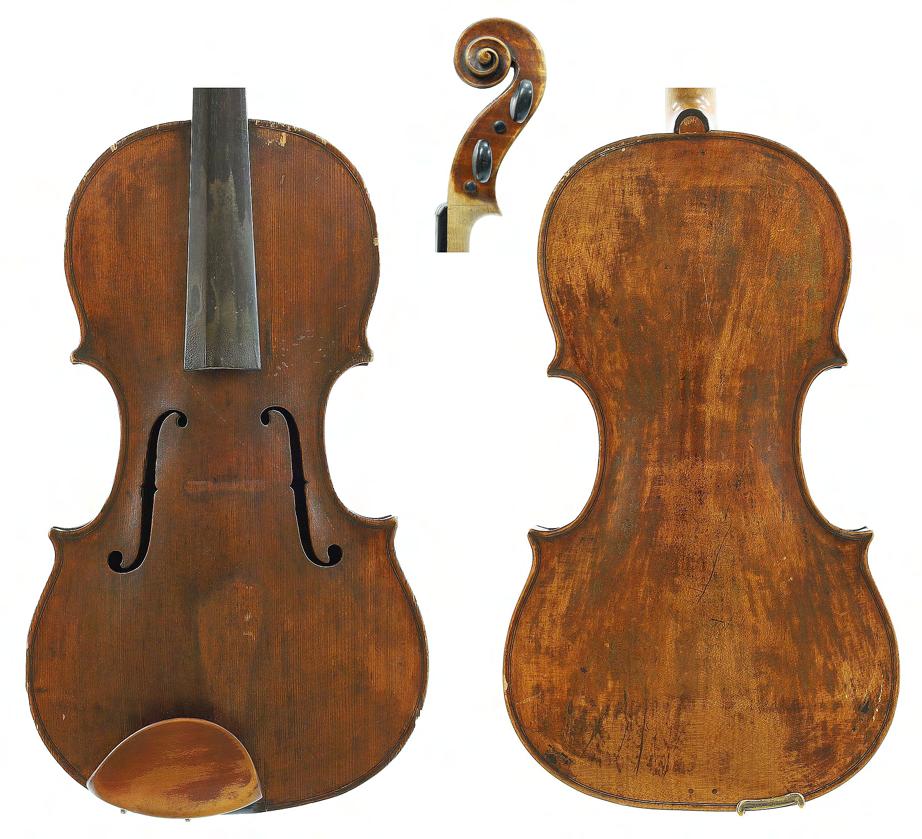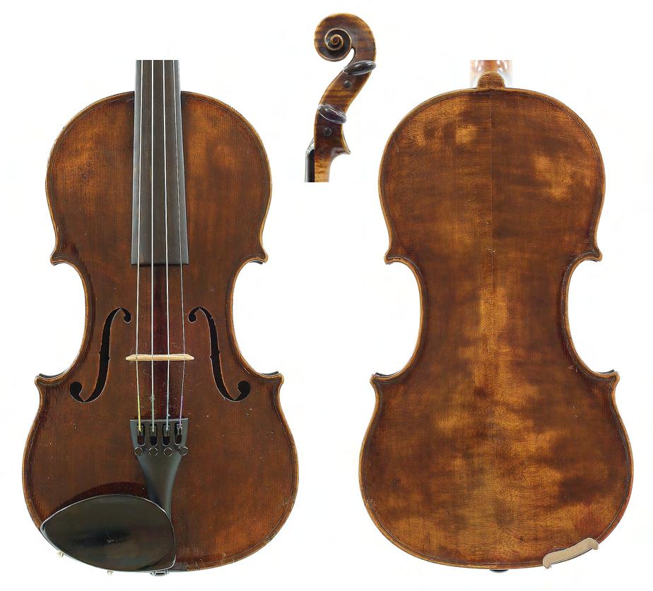 French violin possibly by Justin Derazey circa 1890, labelled Antonius Stradivarius..., the one piece back of faint medium curl with similar wood to the sides, the head of plainish wood, the table of a fine width grain and the varnish of a light reddish-brown colour on a golden ground, 14 3/16", 36cm £2000-3000