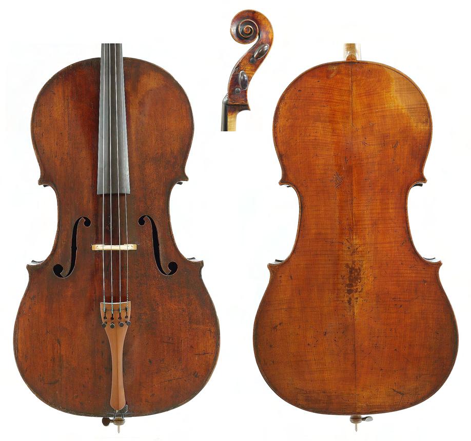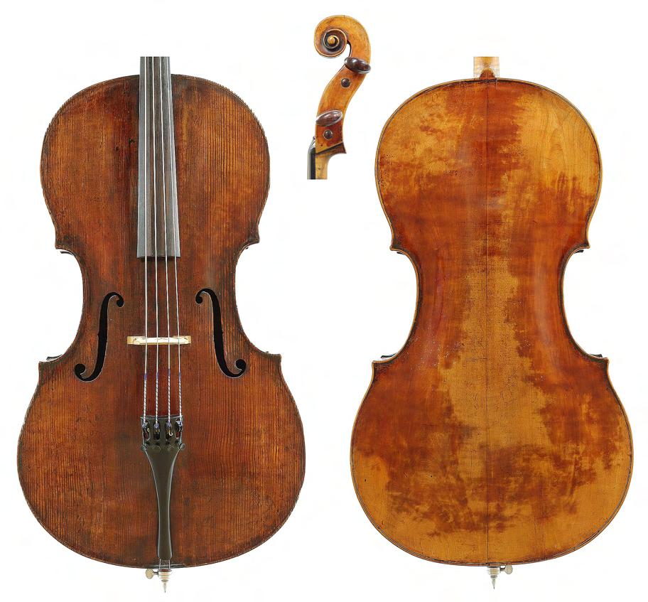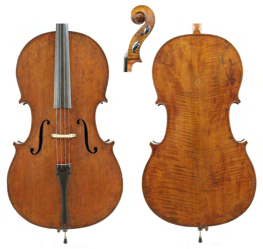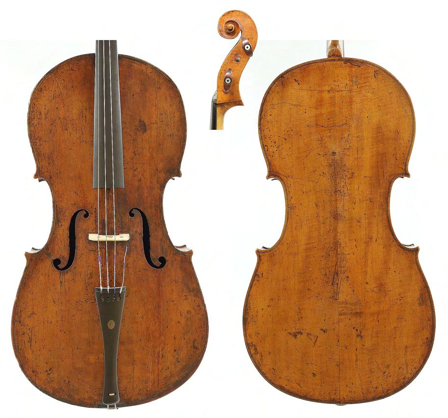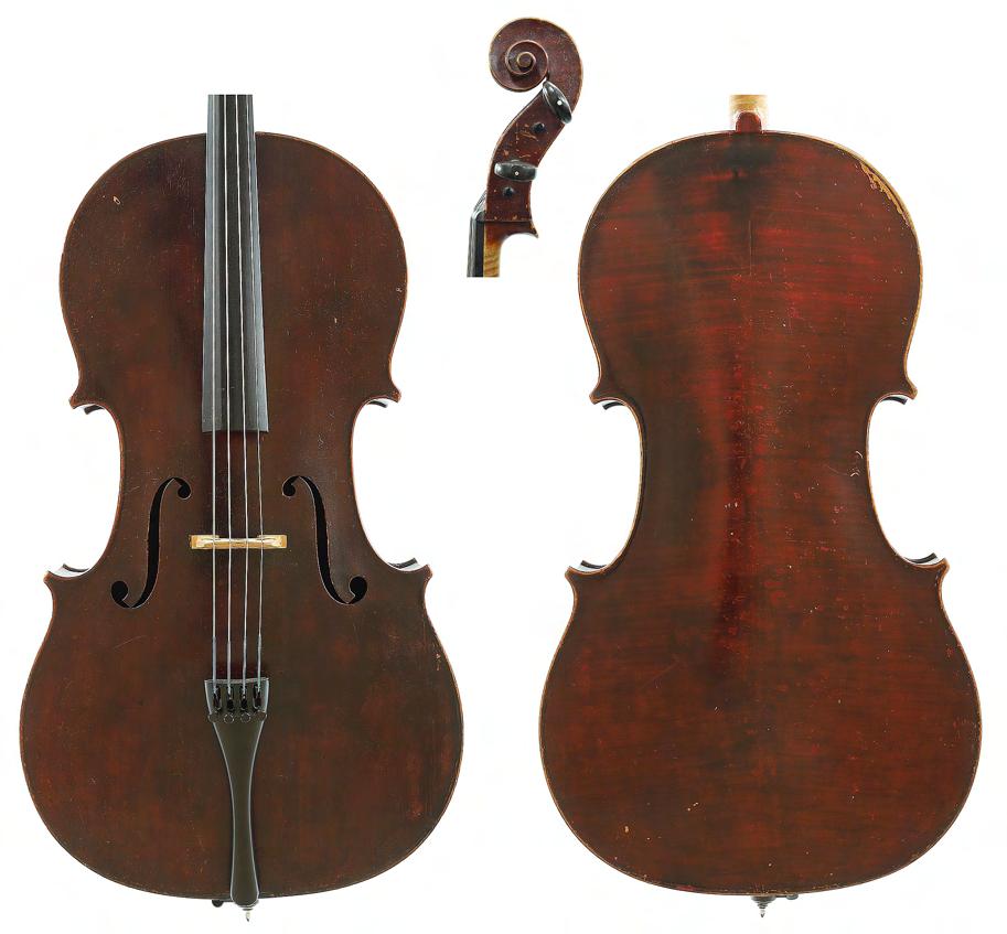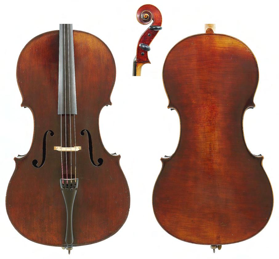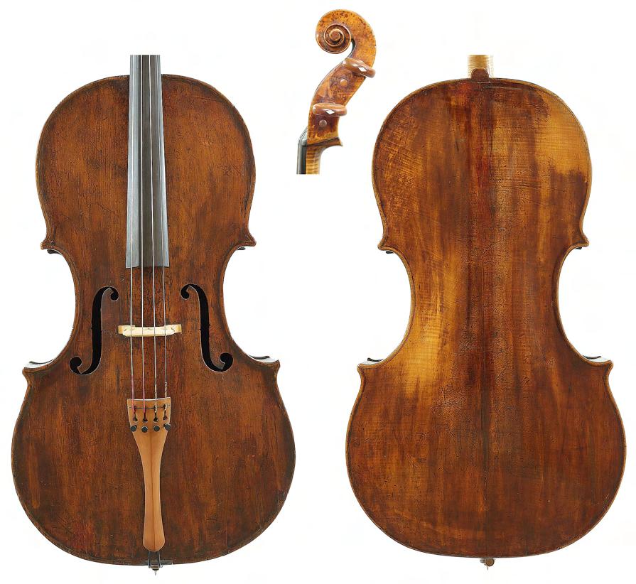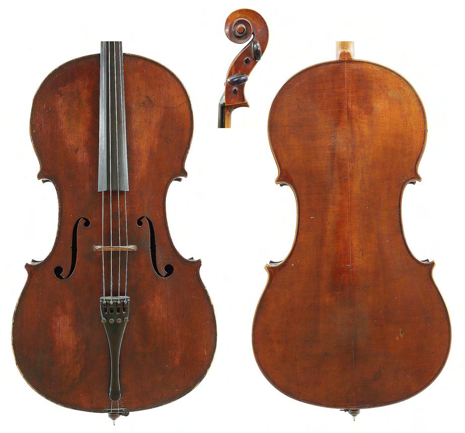 Interesting rare early 18th century English violoncello probably by George Smart and stamped G. Smart on the button the two piece back of plainish wood with similar wood to the head, the sides of faint medium curl, the table of a medium width grain and the varnish of a golden-brown colour, 29 3/8", 74.60cm £7000-10,000