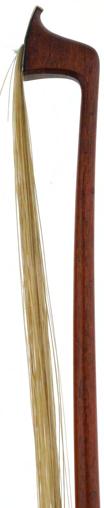 PRIVATE COLLECTION - English silver mounted violoncello bow by W.E. Hill & Sons circa 1930, stamped H & S (Arthur J. Barnes), the stick round, the ebony frog inlaid with pearl eyes and with a silver overlaid ebony adjuster, 77gm