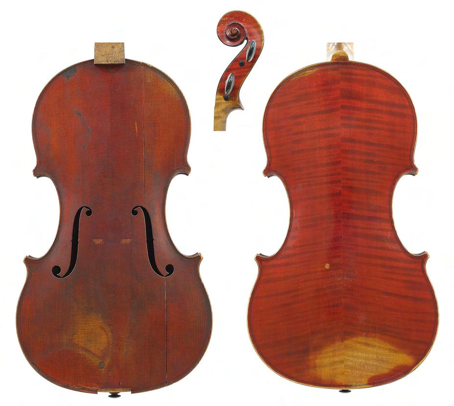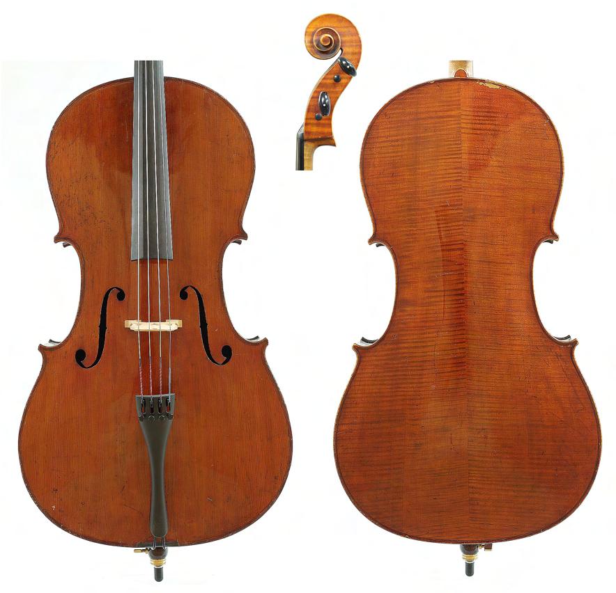 German violoncello of the Neuner and Hornsteiner School circa 1880, unlabelled, the two piece back of medium curl with faint medium curl to the sides, the head of plainish wood, the table of a medium width grain and the varnish of a plum red colour on a golden ground, 29 3/8", 74.60cm £3500-5000