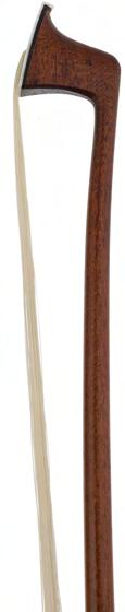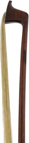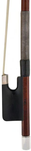 PRIVATE COLLECTION - English silver mounted violoncello bow by W.E. Hill & Sons, circa 1933, stamped Hill (Edgar Bishop), the stick round, the ebony frog plain and with a silver overlaid ebony adjuster, 71gm
